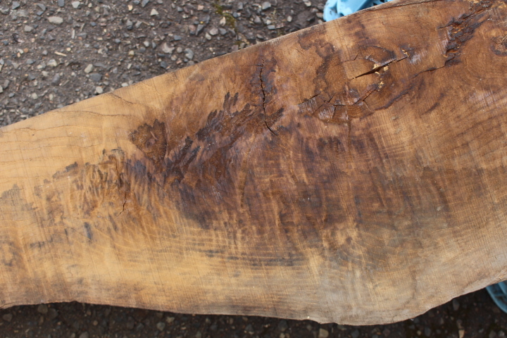 削ればキレイな縮み杢等が見えてくると思います。この木目の一枚板は今では貴重なものです。