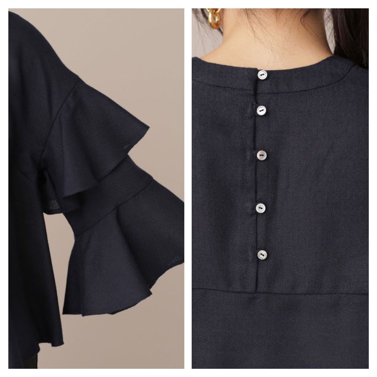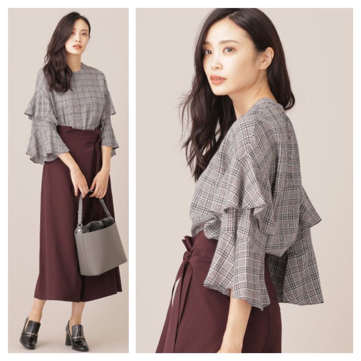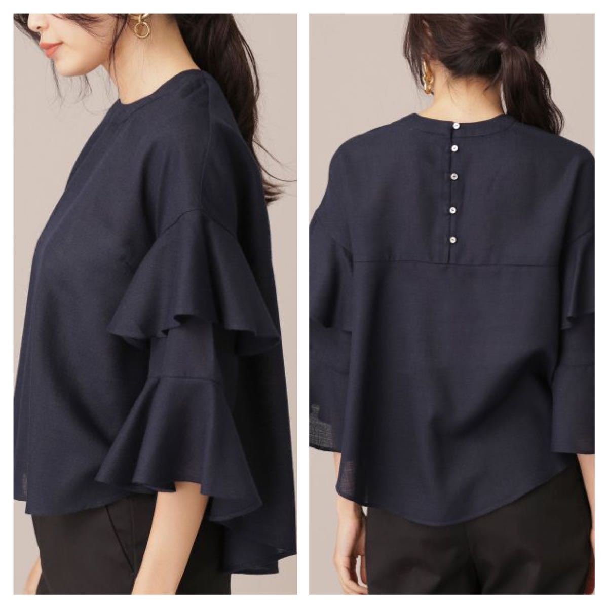 ボリュームのあるフリル袖はトレンドを意識しつつ、気になる腕のラインをカバーしてくれます。