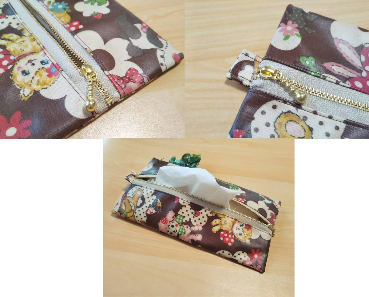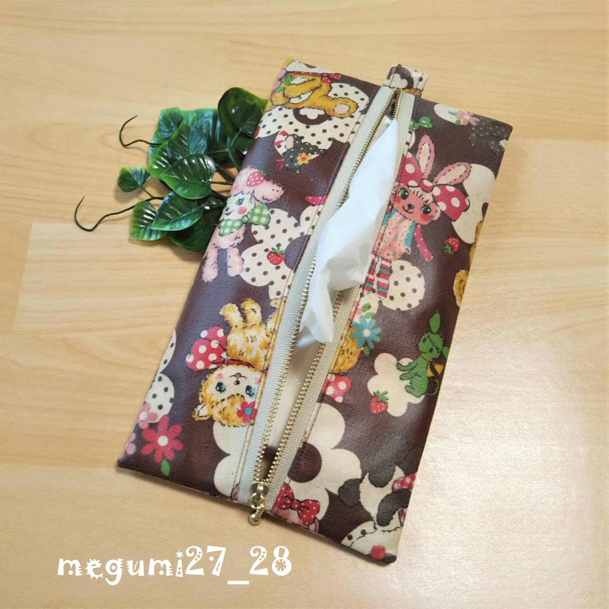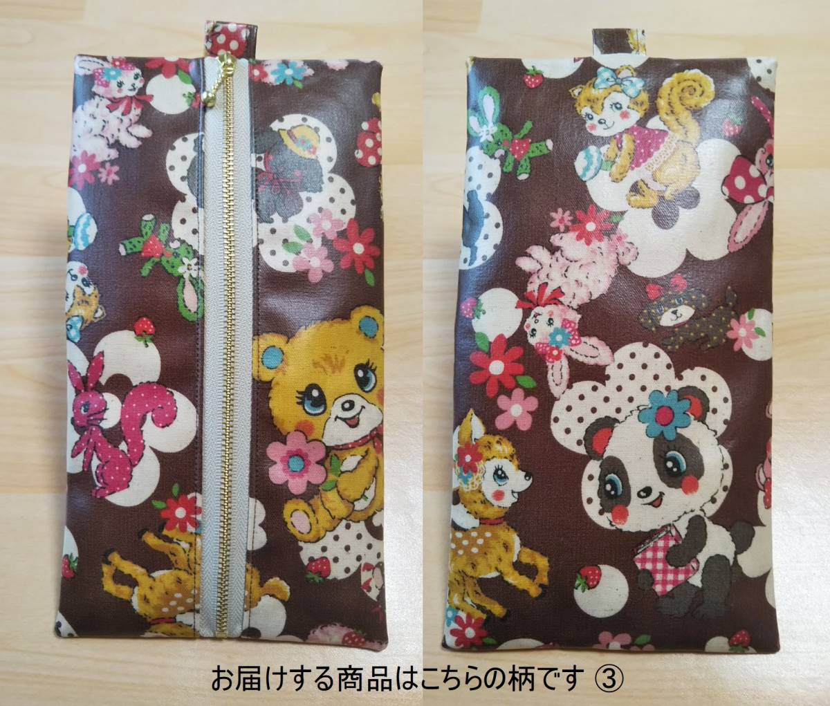 <ティッシュケース(ファスナー)>レトロアニマルチョコ◆ボックスティッシュサイズ◆ハンドメイド◆ラミネート加工
