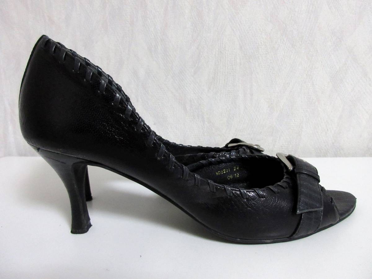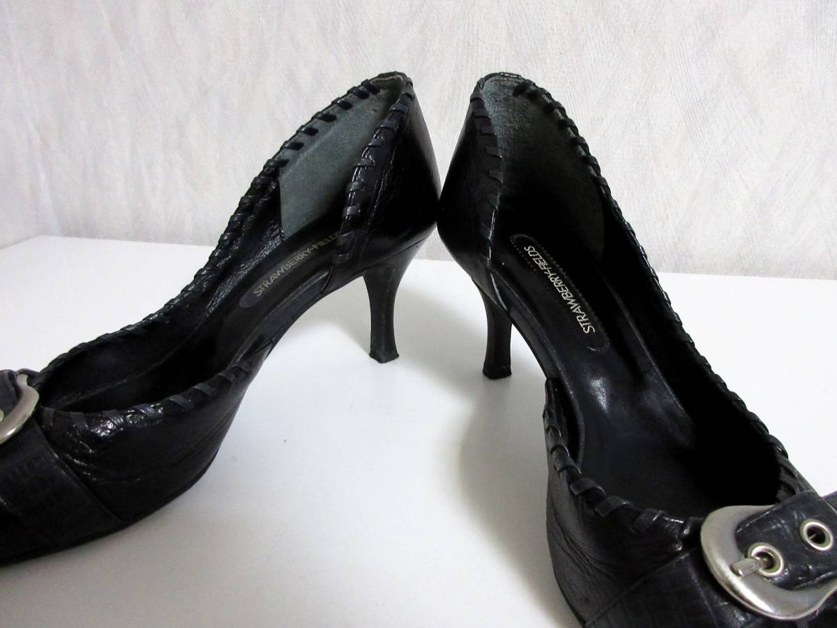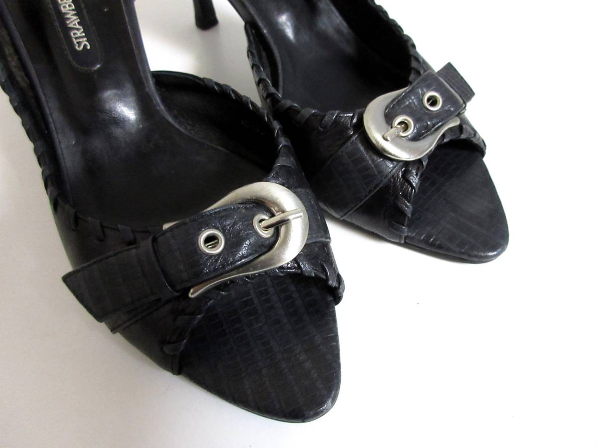 ストロベリーフィールズ オープントゥ パンプス 黒 ブラック 24 南3671