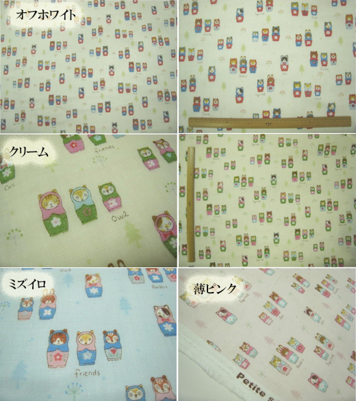 かわいいアニマルのマトリョーシカ柄。小柄でユニークです。ガーゼの柔らかい風合いを活かして洋服や、インテリア、小物など。シンプルでも面白い作品が出来そうです。