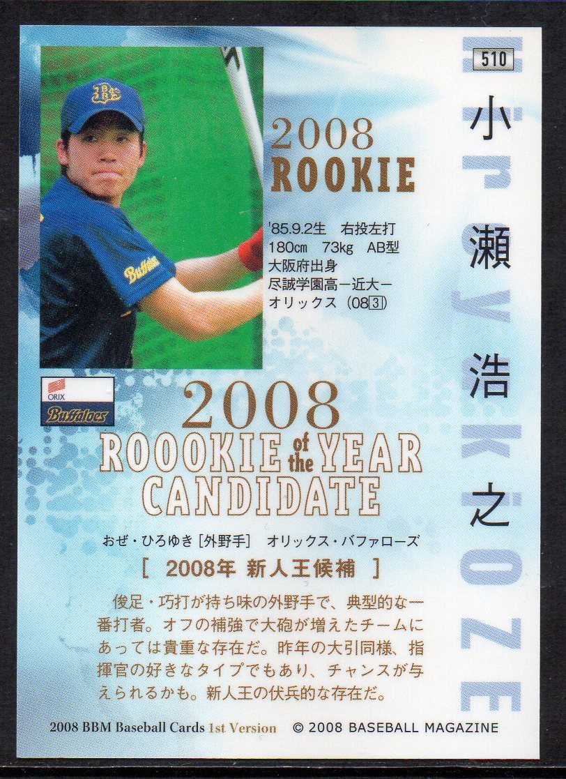 BBM2008 小瀬浩之 510 オリックスバファローズ ルーキーオブザイヤー
