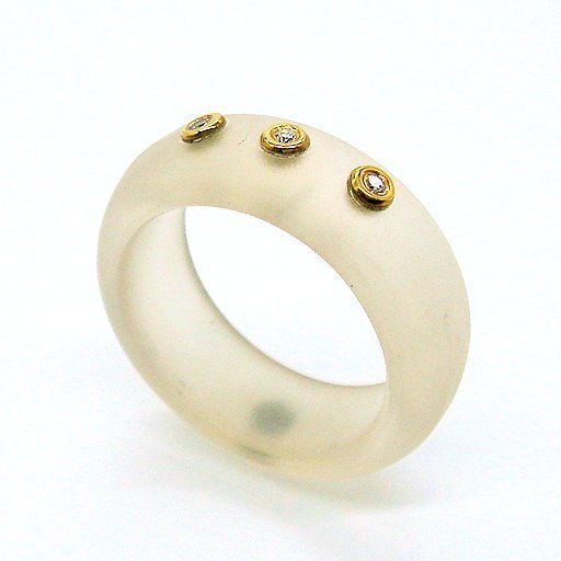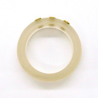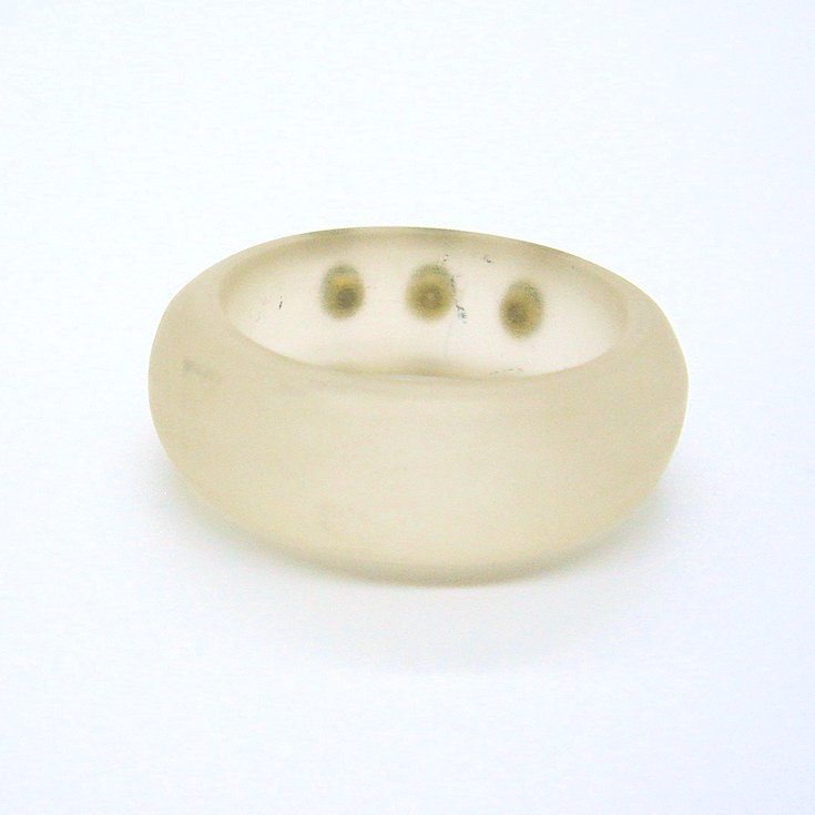 手作りクリスタルリングをツヤ消しした仕上げで、しっとりと落着いたムードあふれる品です。