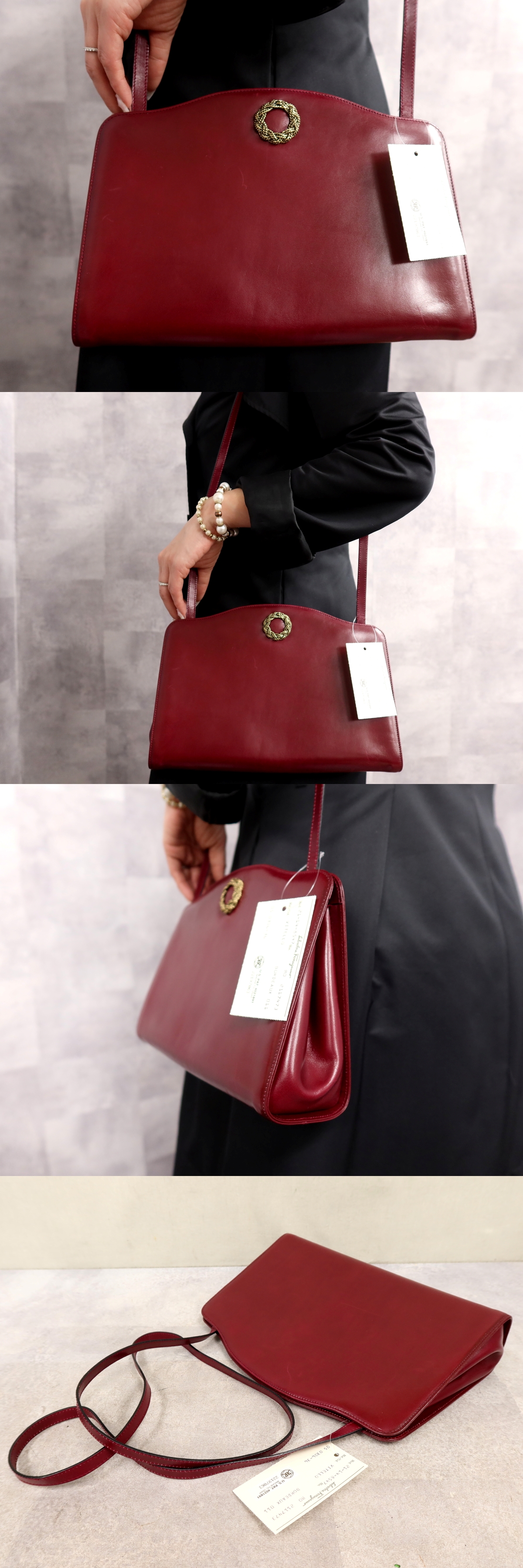 ●超美品●Salvatore Ferragamo フェラガモ●カーフ レザー 本革●ショルダー バッグ●ワインレッド●ゴールド金具●ヴィンテージ●Js65894