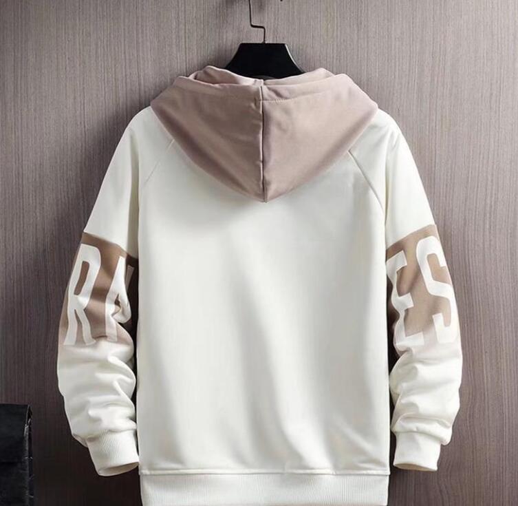 上質パーカー メンズ プルオーバー 長袖 フード付き 英文字 袖ライン カジュアル プルパーカー 春夏秋冬 ホワイト 2XL