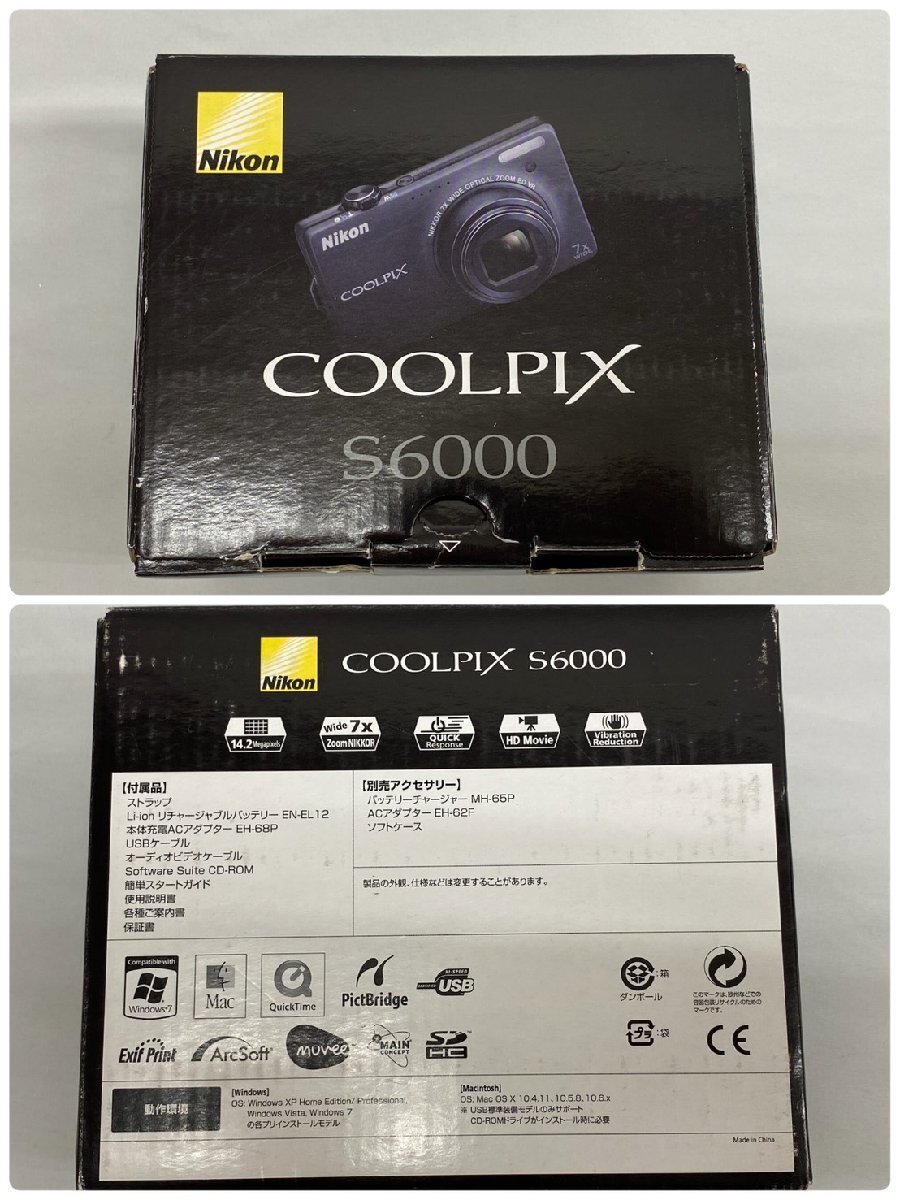 動作未確認 Nikon COOLPIX S6000 ニコン クールピクス コンパクト デジタルカメラ ブラック AVケーブル 説明書 箱 ジャンク品