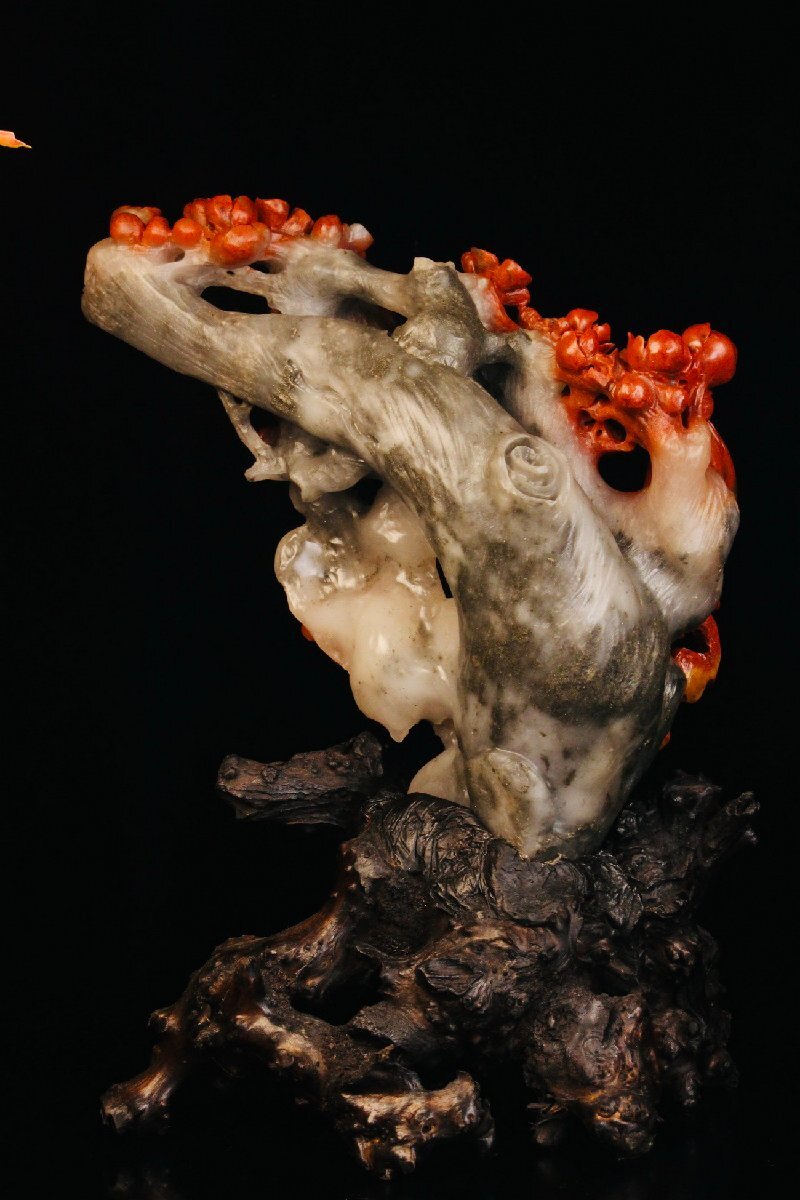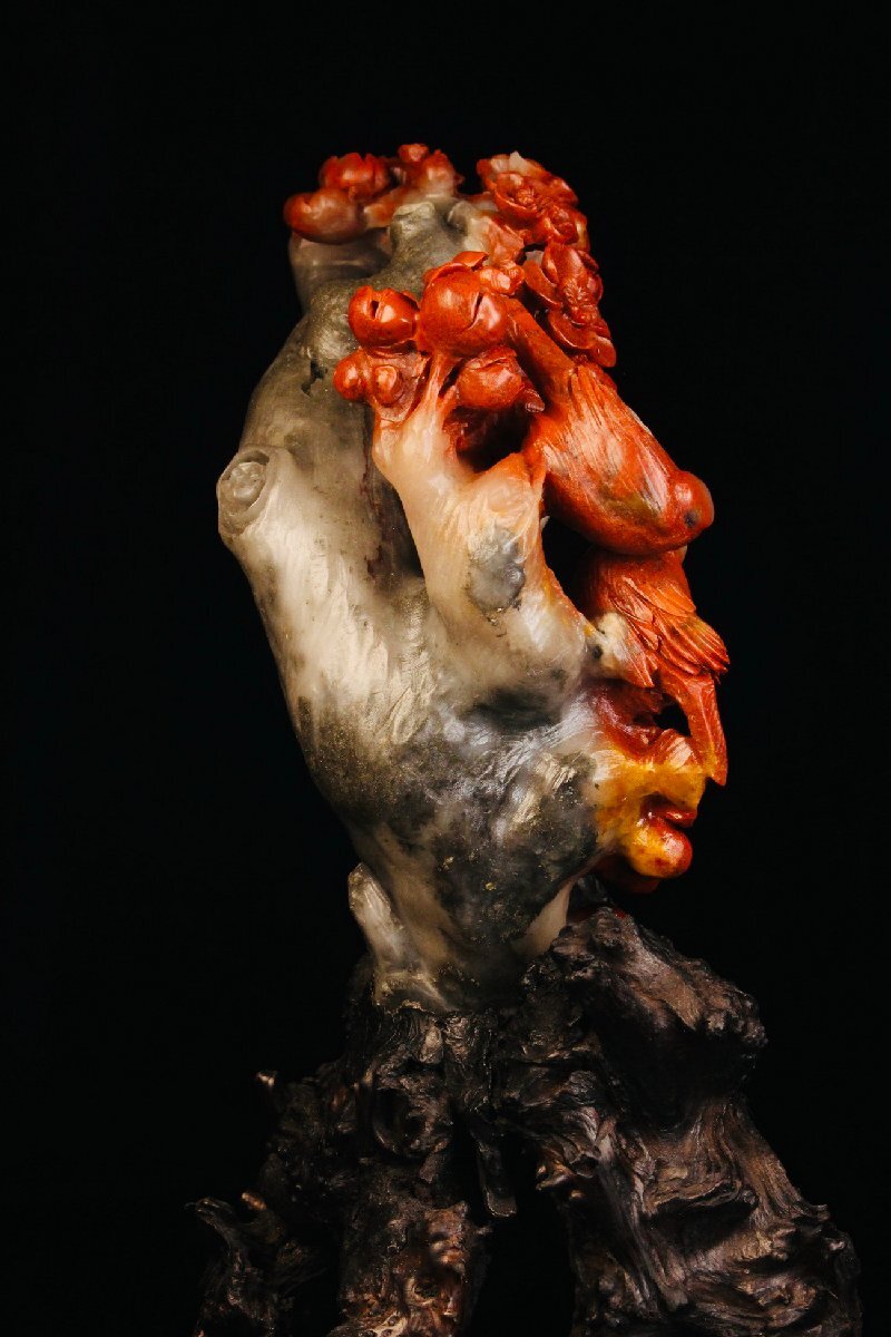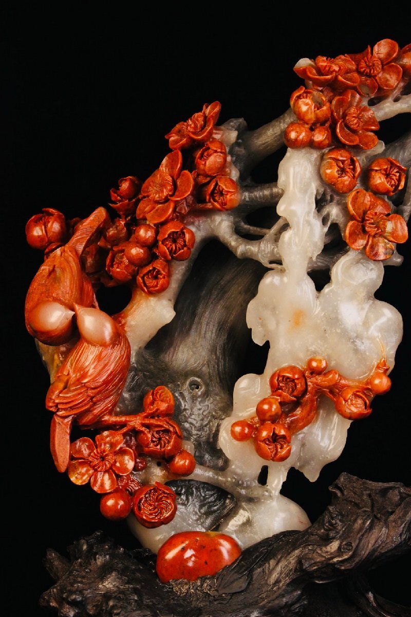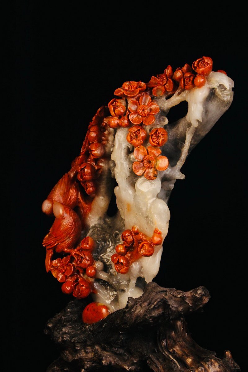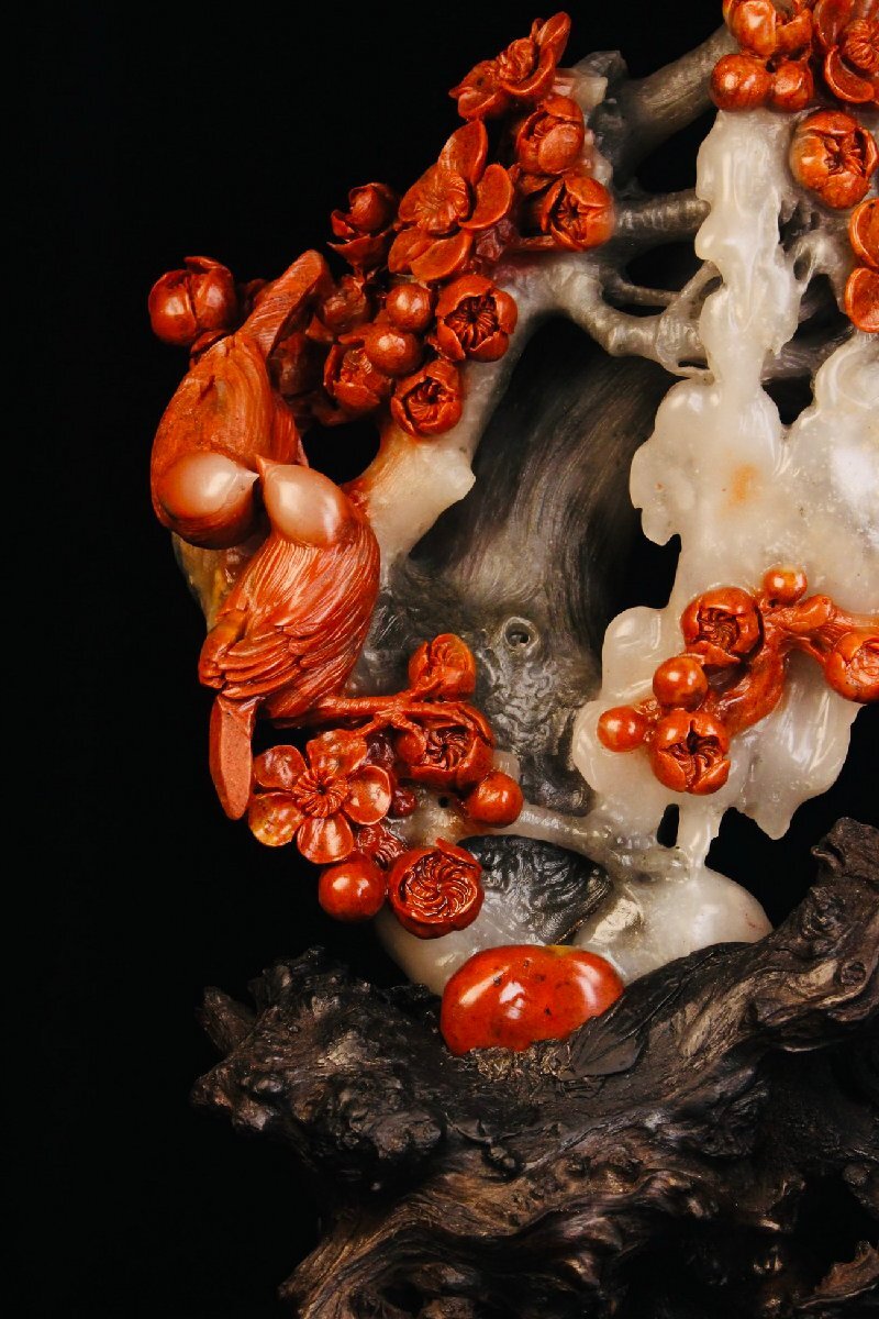 【清】某収集家放出品 時代物 寿山芙蓉石 花鳥文置物 材質保証 中国伝来 当時物保証 古美術 骨董品7L10-PF5