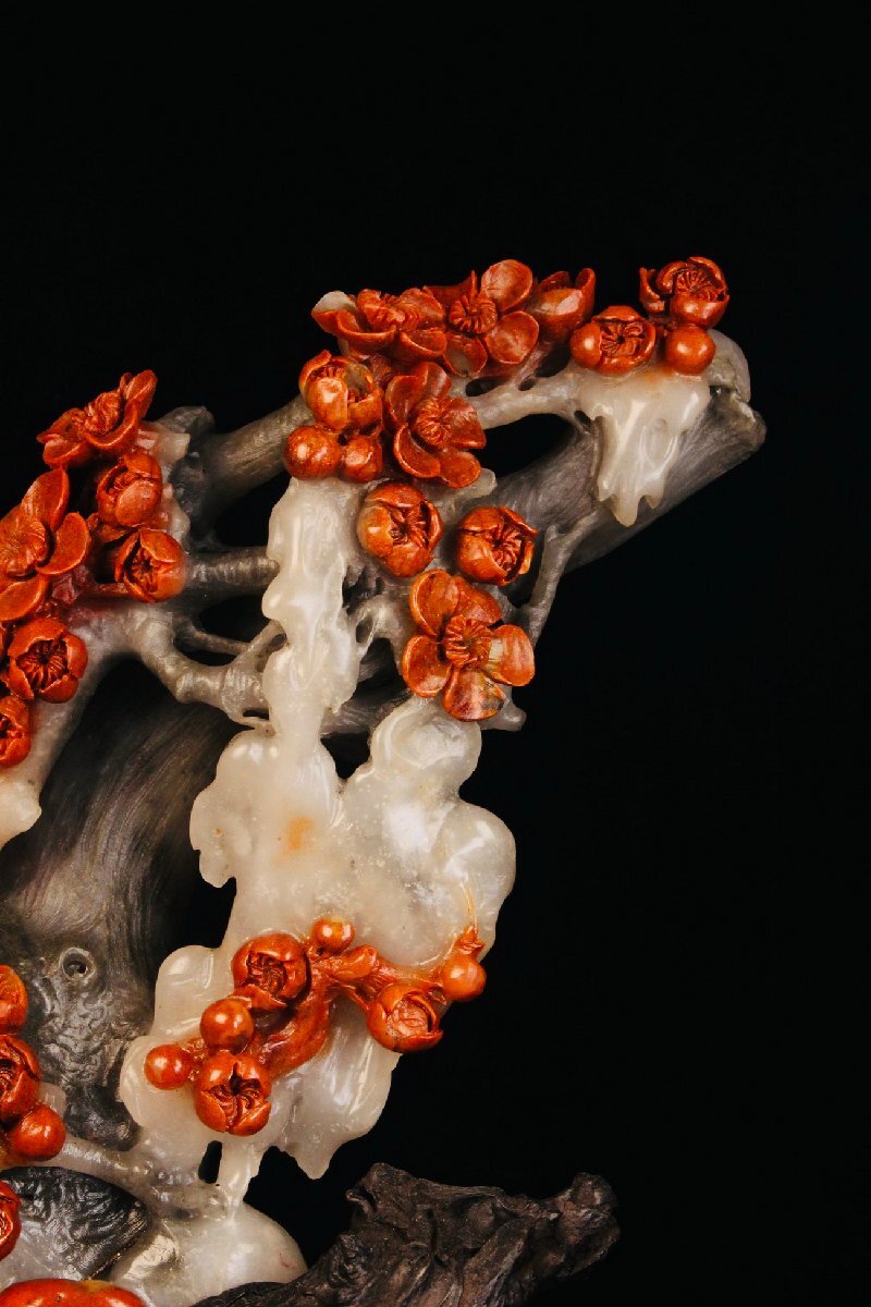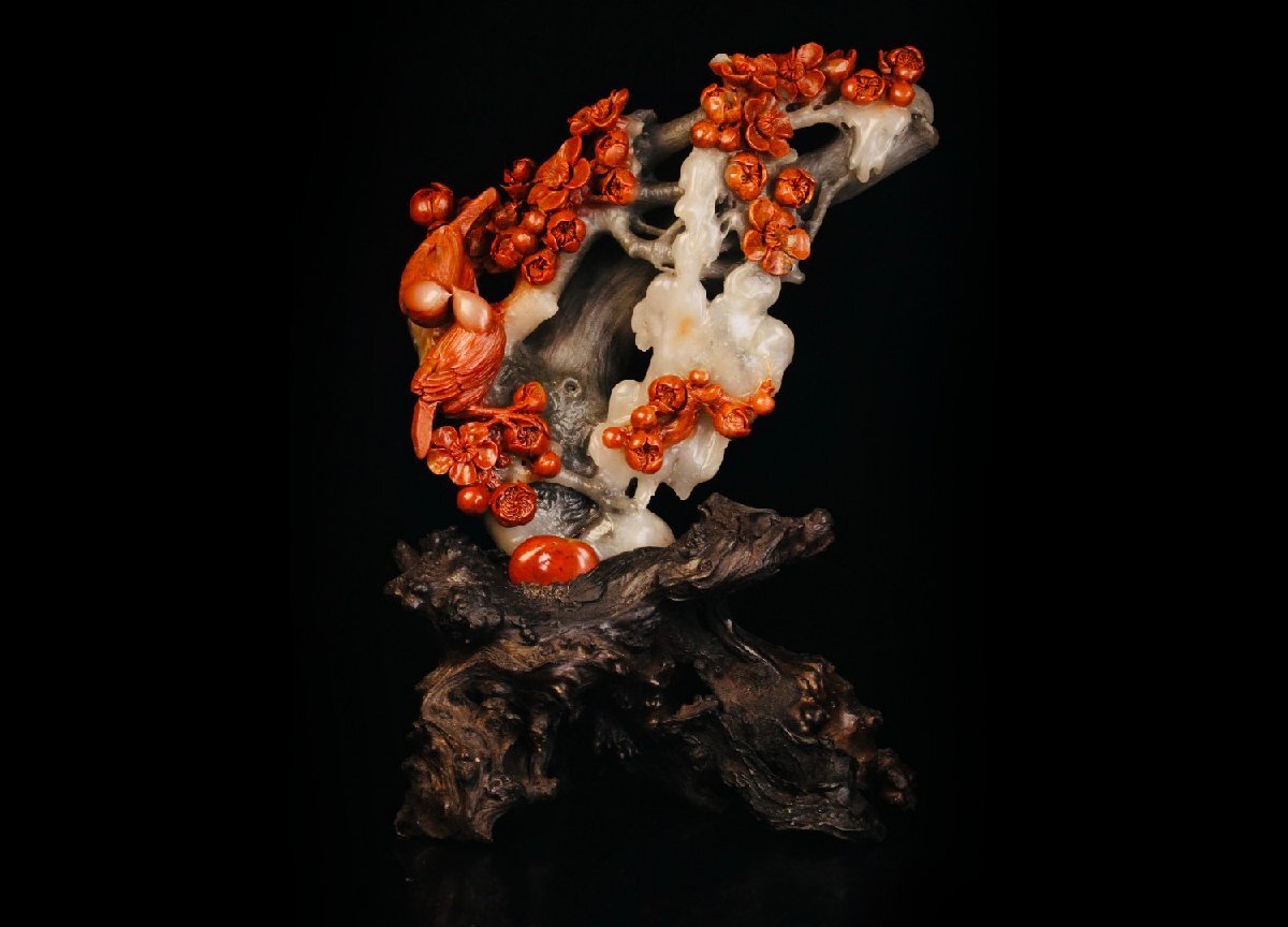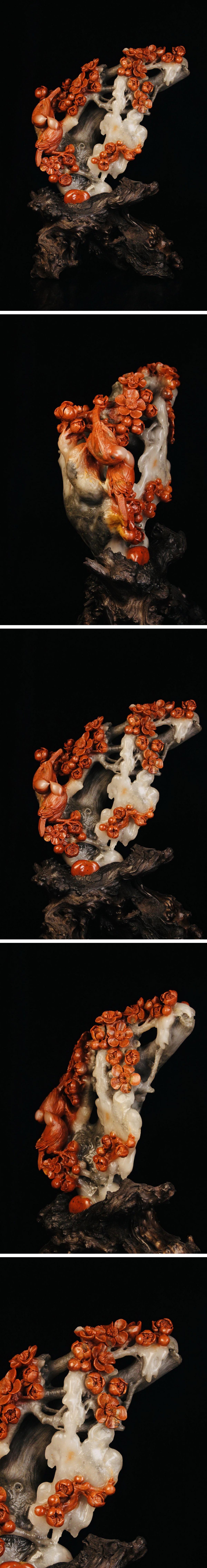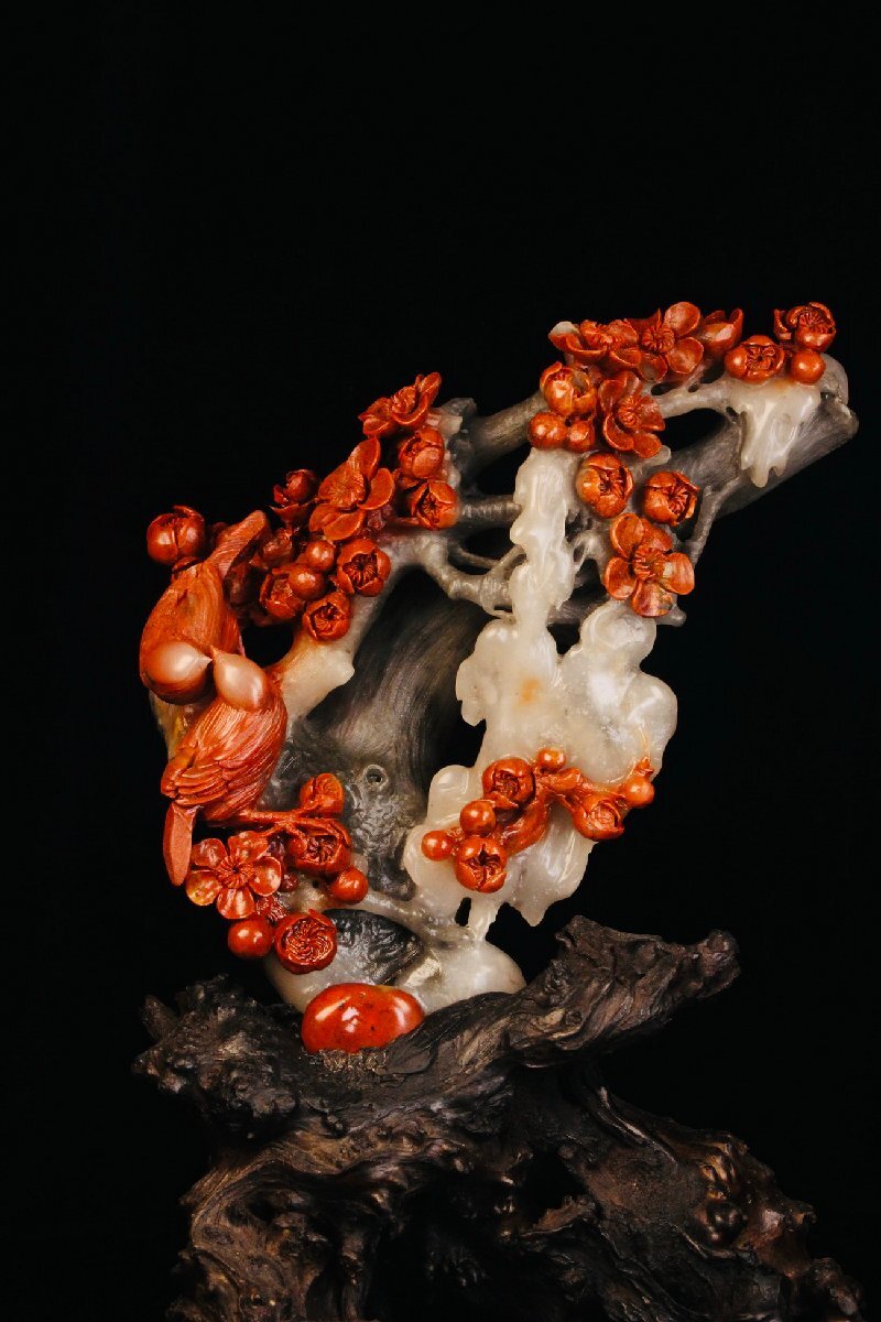 【清】某収集家放出品 時代物 寿山芙蓉石 花鳥文置物 材質保証 中国伝来 当時物保証 古美術 骨董品7L10-PF5
