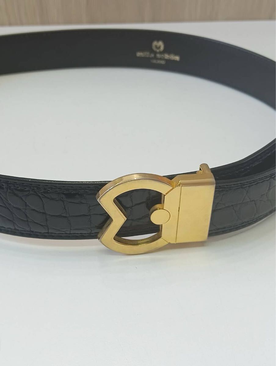 【中古品】mila schon ミラショーン ベルト ブラック 黒 イタリア製 ゴールドバックル 現状品