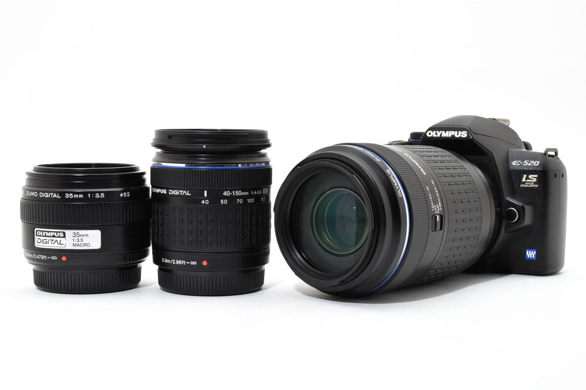 ★ショット数:6,917回!!★ OLYMPUS オリンパス E-520 + ZUIKO 35mm F3.5 & 40-150mm F4-5.6 & 70-300mm F4-5.6 デジタル一眼レフカメラ