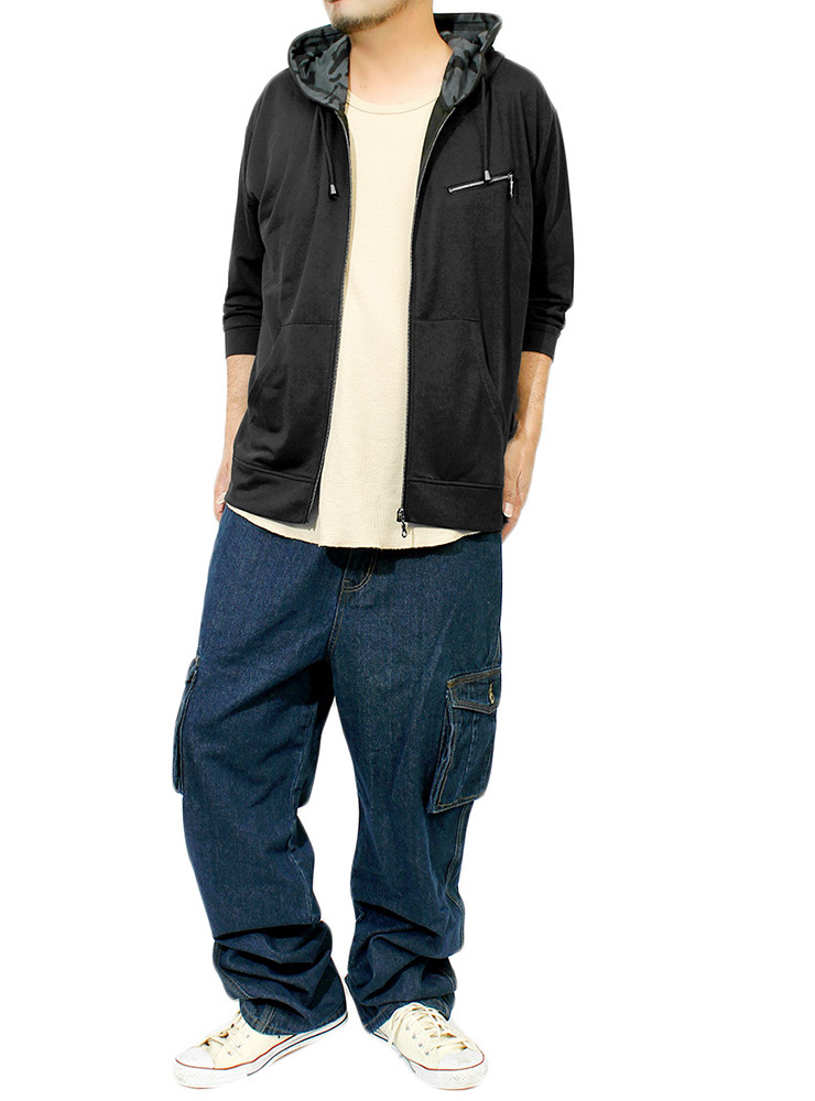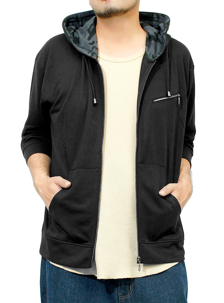 | 商品名 | 【新品】 3L ブラック 7分袖 パーカー メンズ 大きいサイズ 半袖 長袖 カモフラ 迷彩 薄手 ジップアップ ゆったり ジップアップパーカー |