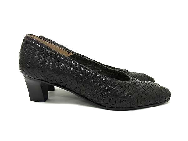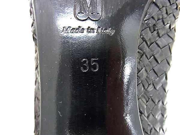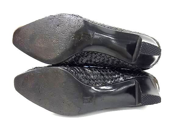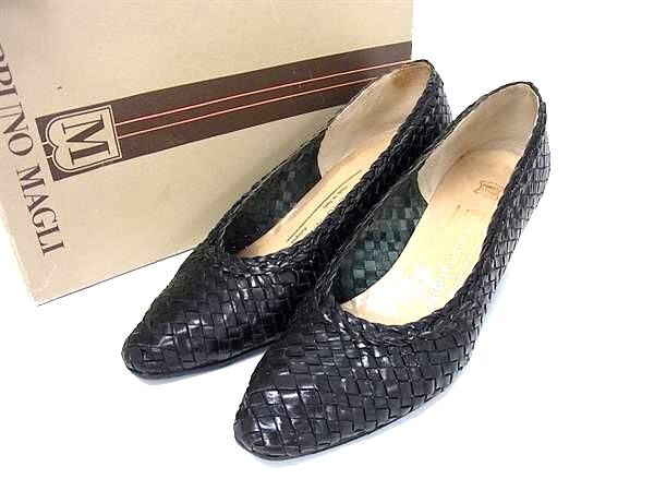 ■美品■ BRUNOMAGLI ブルーノマリ レザー 編み込み ヒール パンプス 表記サイズ 35 (約22.0cm) 靴 シューズ ブラック系 DJ6190