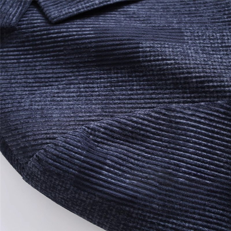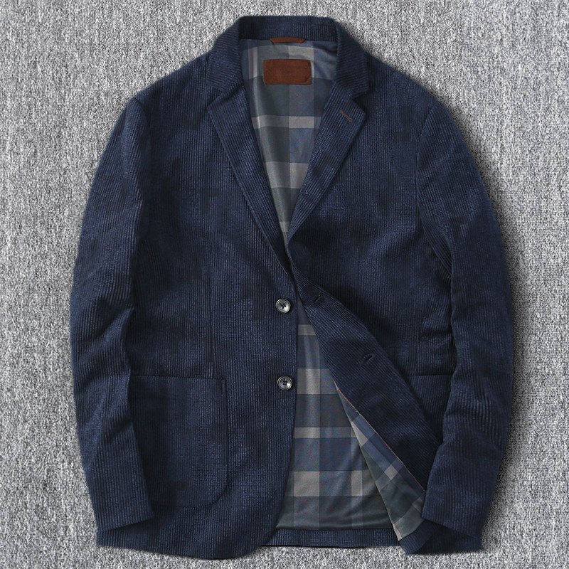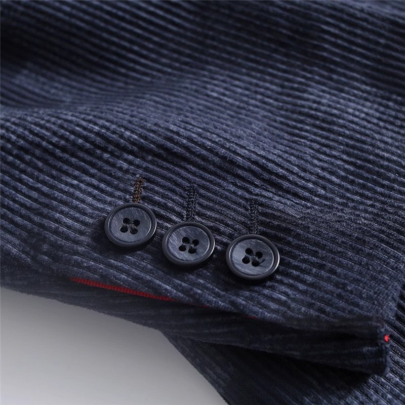 高級 DCKMANY 新品 メンズ テーラードジャケット 春秋 ビジネス  コーデュロイスーツ しわ防止 スリム スーツジャケット/濃紺T8033-3XL