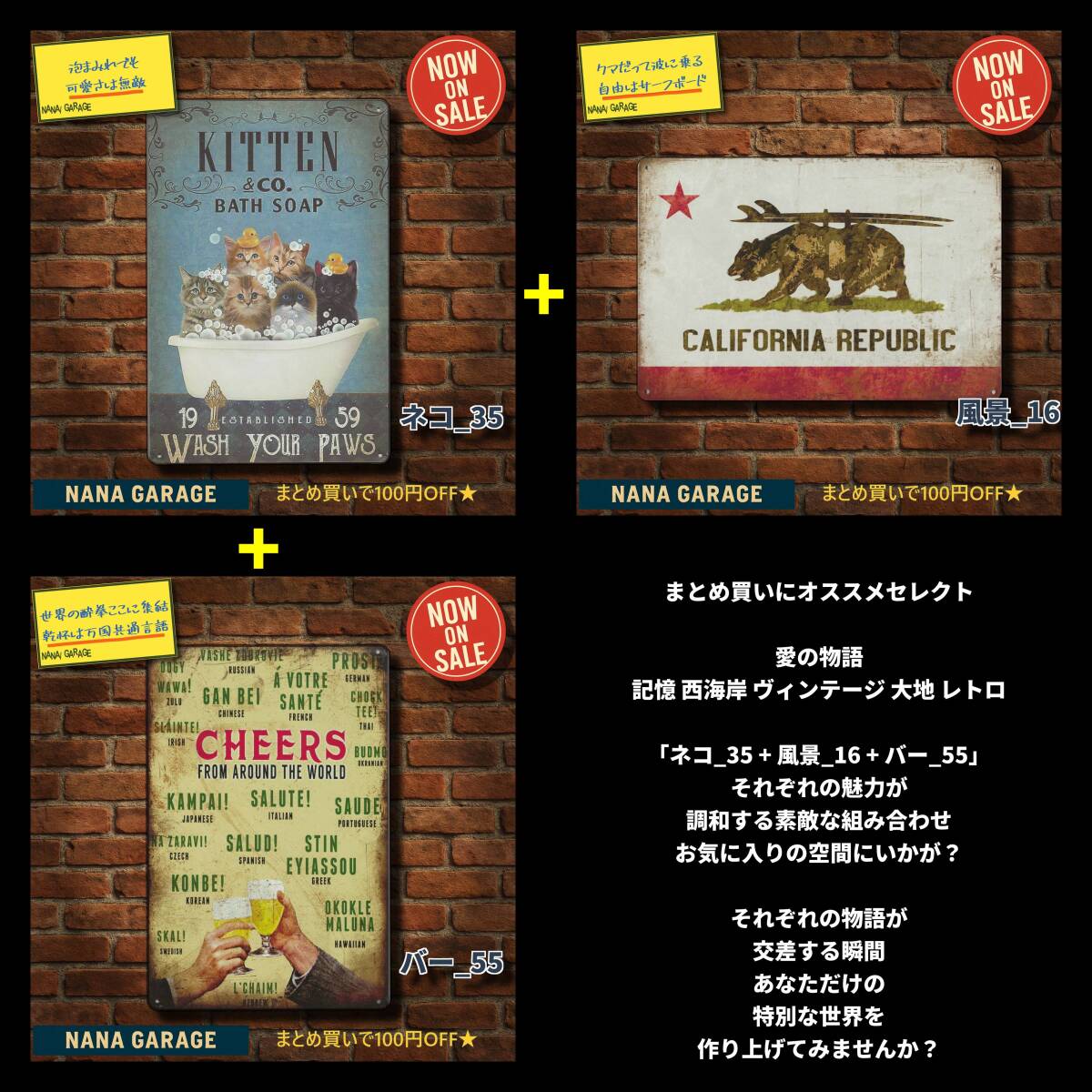 海外直輸入のヴィンテージ風ブリキ看板を中心に、