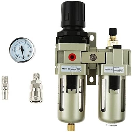 Hicello エアーレギュレーター ウォーターセパレーター エアフィルター 圧力計付き AC3010-02 1/4 オス メス カプラー付き エアコンプレッサー用アクセサリー 圧力調節 水分除去 オイル混合機能