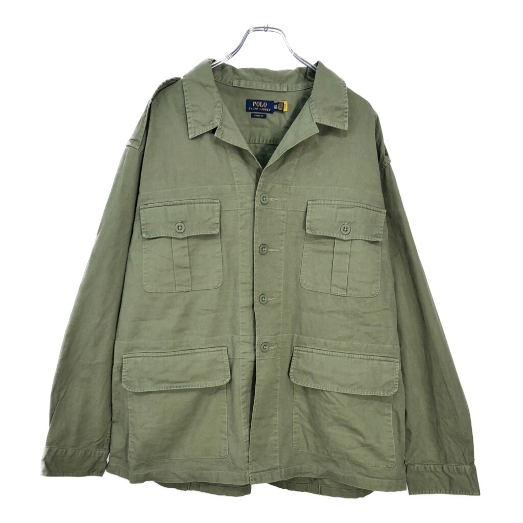| 【商品管理番号】 v4650 【ブランド】 Polo by Ralph Lauren/ポロ ラルフローレン 【サイズ】 XXL 【実寸サイズ】 肩幅:約57cm 着丈:約79cm 身幅:約71cm 袖丈:約65cm 【主な素材】 表地 : コットン 【色】 オリーブ 【仕様】 大きいサイズ サファリジャケット 【状態】 汚れ:脇 特記事項:色褪せ | |||