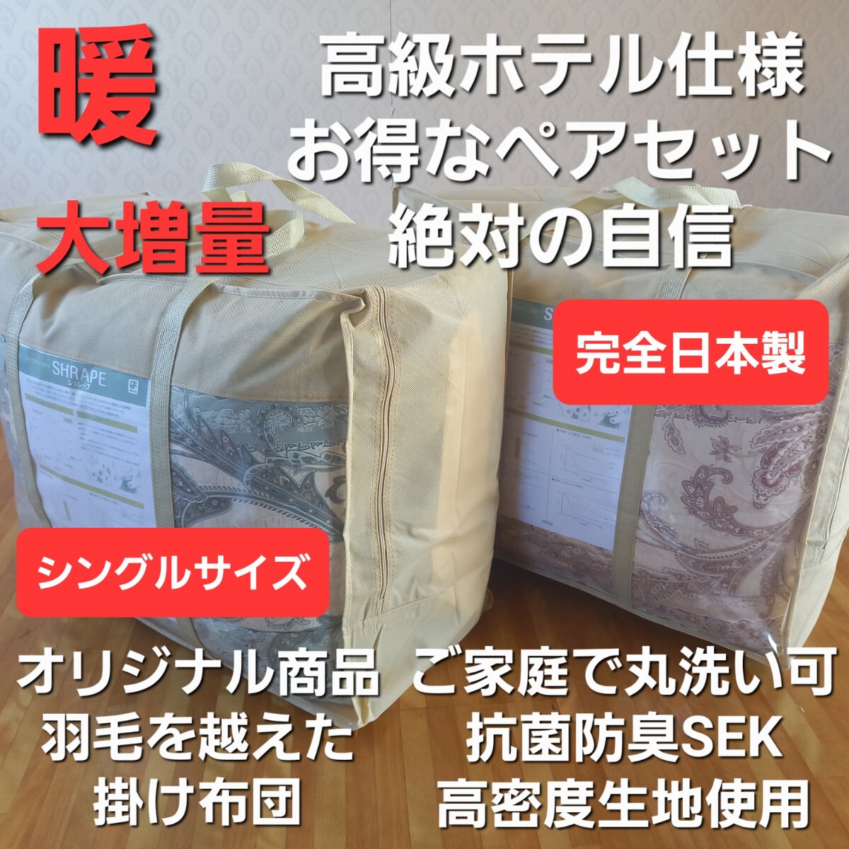 その他にもホテル仕様、羽毛布団、掛け布団、敷き布団、コタツ布団、枕、アレルギー対策布団等出品させて頂いております。
