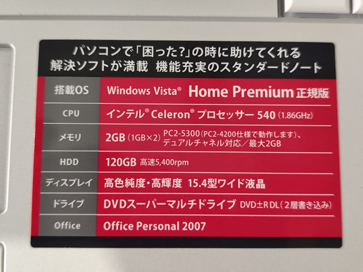 CPU:不明(Intel Celeron 540のようですが確証無し)