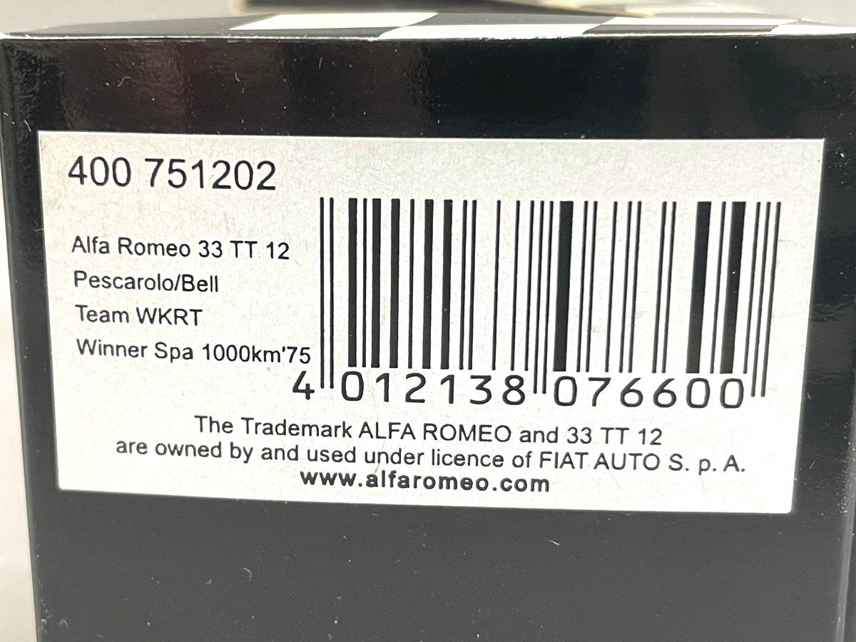 ● PMA ミニチャンプス 1/43 Alfa Romeo アルファロメオ 33 TT12 チームWKRT SPA 1000km 1975 優勝 #2 400751202 ●