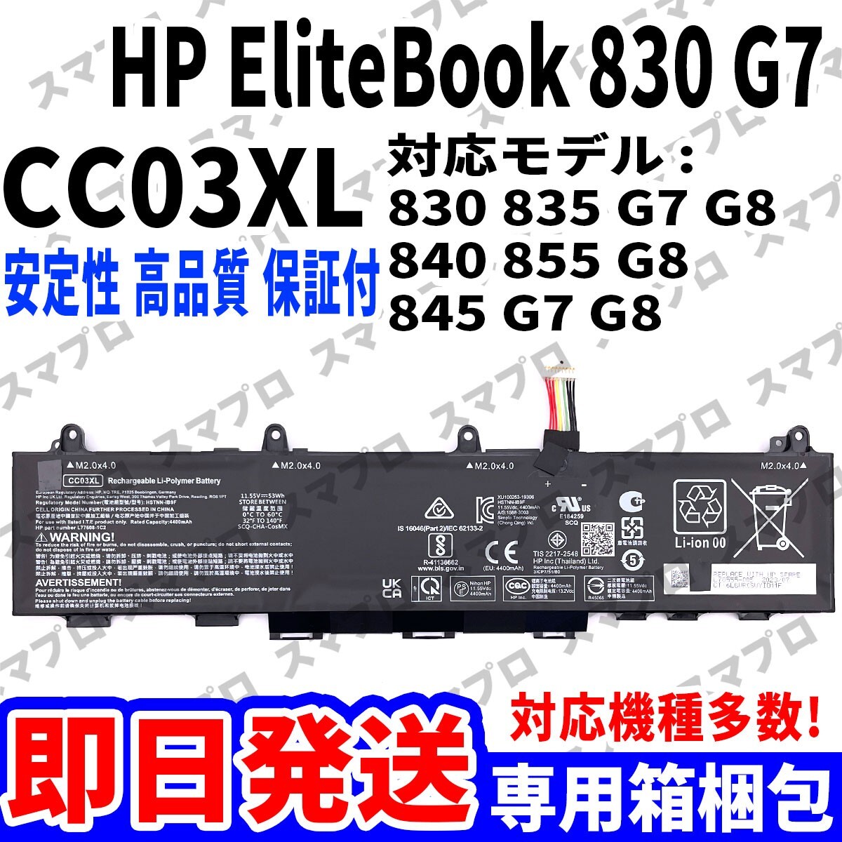 対応機種: HP EliteBook 830 G7 HP EliteBook 830 G7 Series HP EliteBook 830 G8 Series HP EliteBook 835 G7 Series HP EliteBook 835 G8 Series HP EliteBook 840 G7 Series HP EliteBook 840 G8 Series HP EliteBook 845 G7 Series HP EliteBook 845 G8 Series HP EliteBook 855 G8 Series HP ZBook Firefly 14 G7 Series HP ZBook Firefly 14 G8 Series 対応用 バッテリー型番: CC03XL 対応純正型番 CC03XL HSTNN-DB9Q HSTNN-IB9F HSTNN-LB8Q L77608-271 L77608-421 L77608-1C1 L77608-2C1 L78555-005 対応用 修理症状: "充電が遅い/バッテリーの減りが早い 裏側が膨らんできた/最大容量を増やしたい/" ※こちらの機種は本体の製造年、販売キャリアによりバッテリーが異なる場合がございます。 必ずお手元の本体に搭載されているバッテリー型番をご確認の上ご購入ください。 |