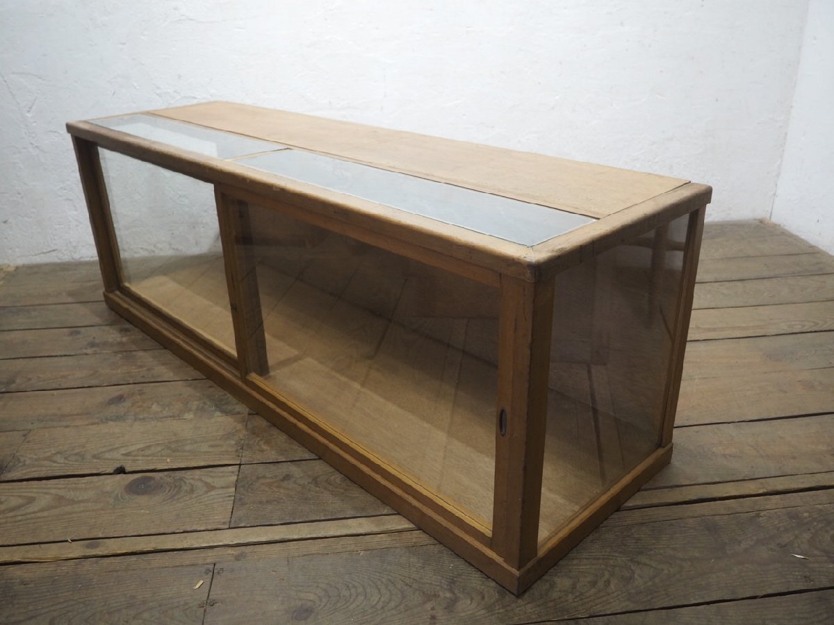 タ荷T0807◆②H52cm×W151cm◆ロータイプの大きい木製ガラスケース◆飾り棚 収納棚 展示台 ショーケース レトロ ヴィンテージO(ヤD)松