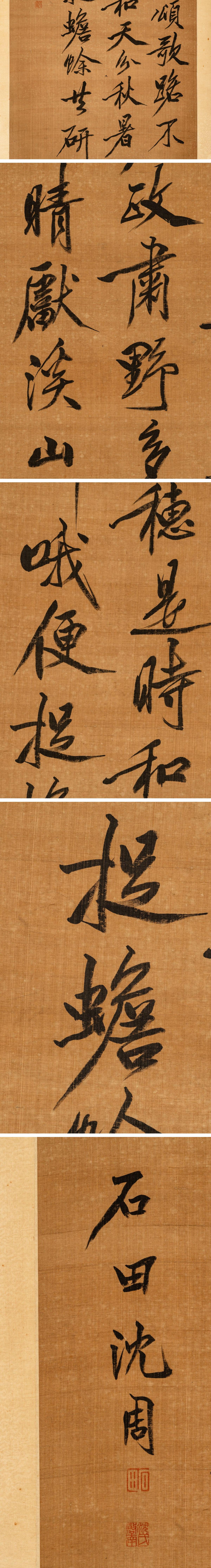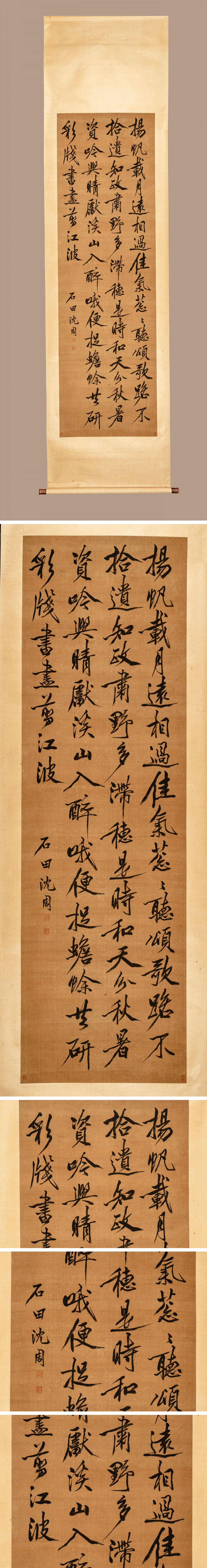 【清】中国明時代画家「沈周書」絹本「書法字貼・掛け軸」巻き物 中国画 墨寶妙品 中国書画 古美味 古美術7L6-28XC8