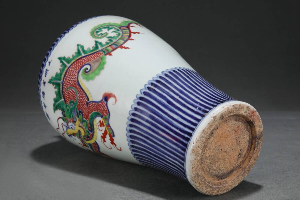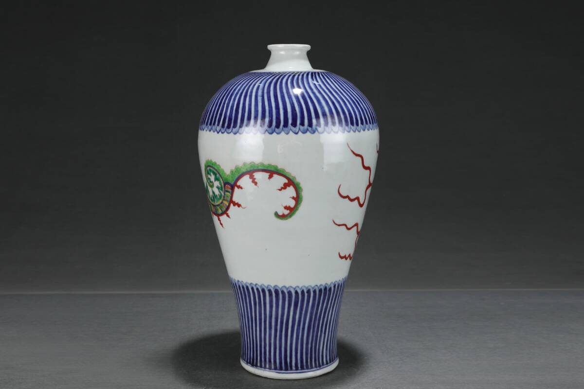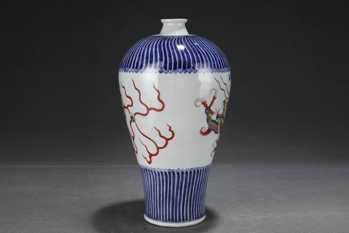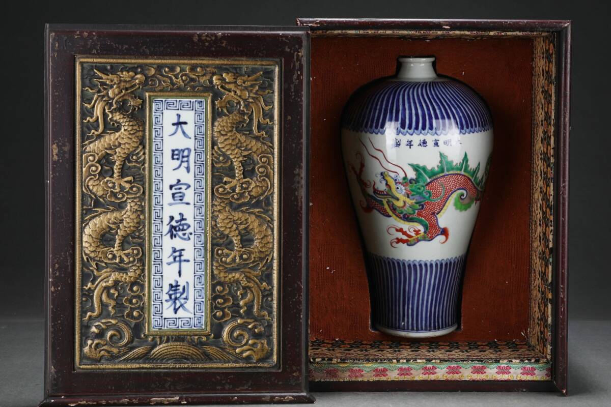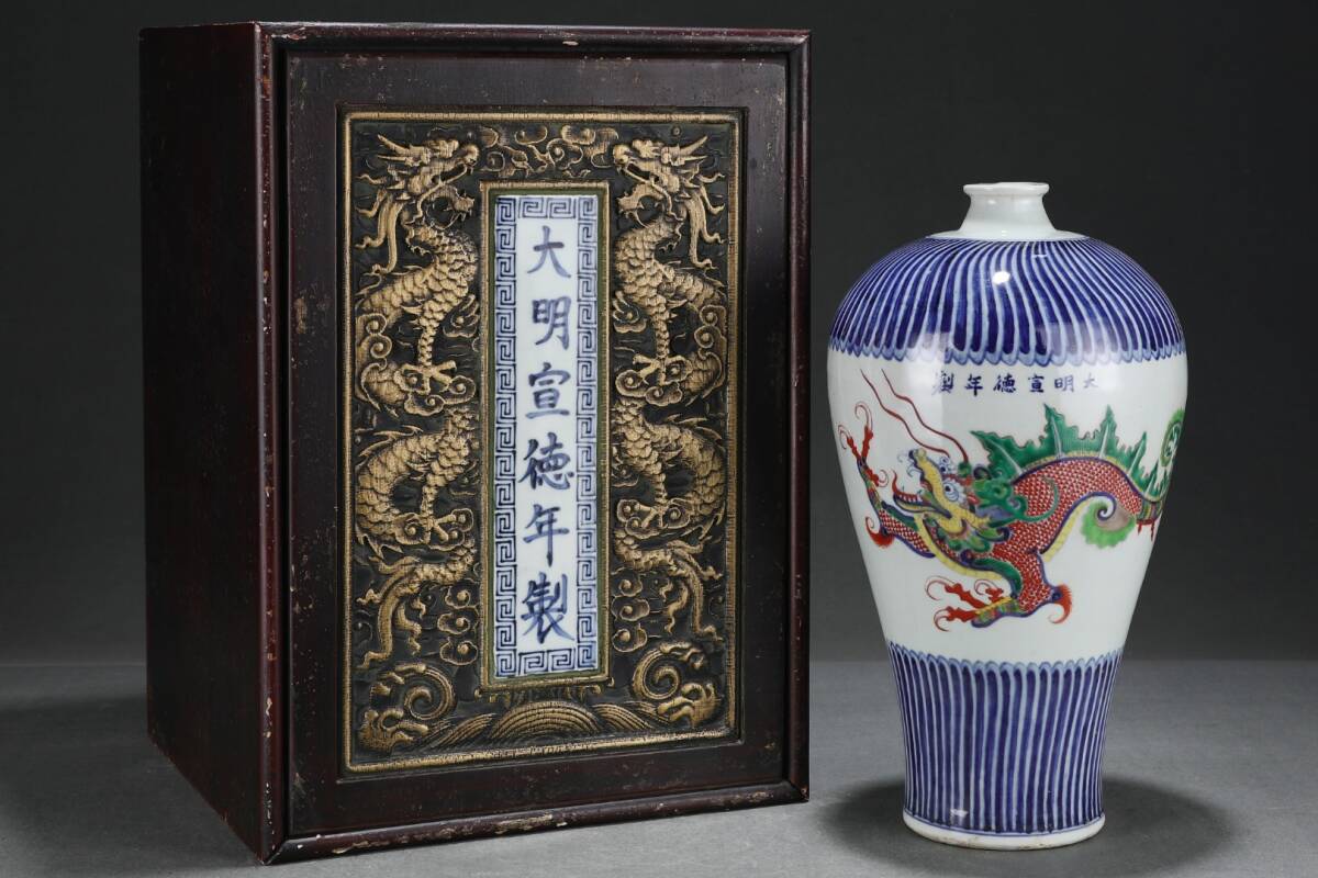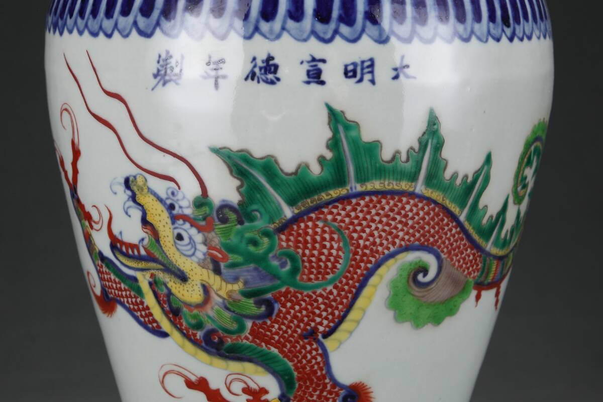 中国磁器 陶芸 磁器『明宣徳制青花五彩竜紋梅瓶』施釉陶 古代工芸品 陶芸 精美彫 置物 收藏品 | |||