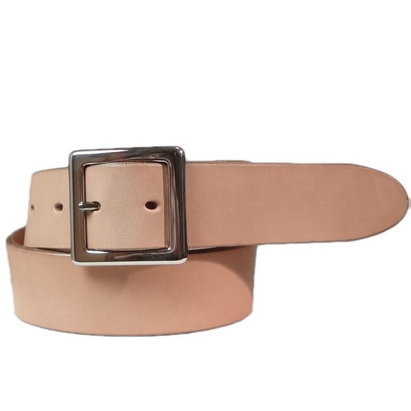 使用するとキャメル色へと変化しあじが出ます、1枚革で幅は40mm、革の厚さは4,5mm、ハードですがだんだんとしなやかになってゆきます