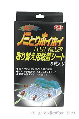 ・ 3枚入 4994527706803・・Size:3枚入・薬剤を使わないので安心!商品紹介 電子ノミとりホイホイ専用の取り替え用粘着シート(3枚入り)です。 原材料・成分 プラスティック 使用方法 【使用場所】 部屋の隅、ベッドやソファーの下、壁際、カーペットや畳の上など。 ※昼間や明るい場所ではノミは誘引されないので、夜間や暗い場所で使用すること。 【持続期間】 粘着シートの交換目安:約3週間(通常の環境下で使用した場合の目安) 4994527706803 在庫完売の際は、お取寄せ又はキャンセルとなる場合がございます。また、と弊社商品お届け予定日は異なる場合もございますので予めご了承下さい。商品は予告なくパッケージ変更の場合もあります。