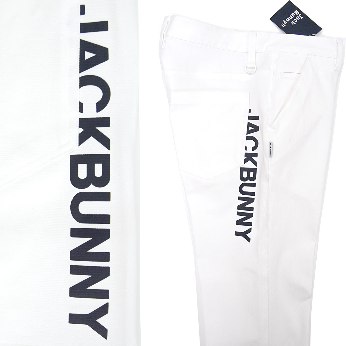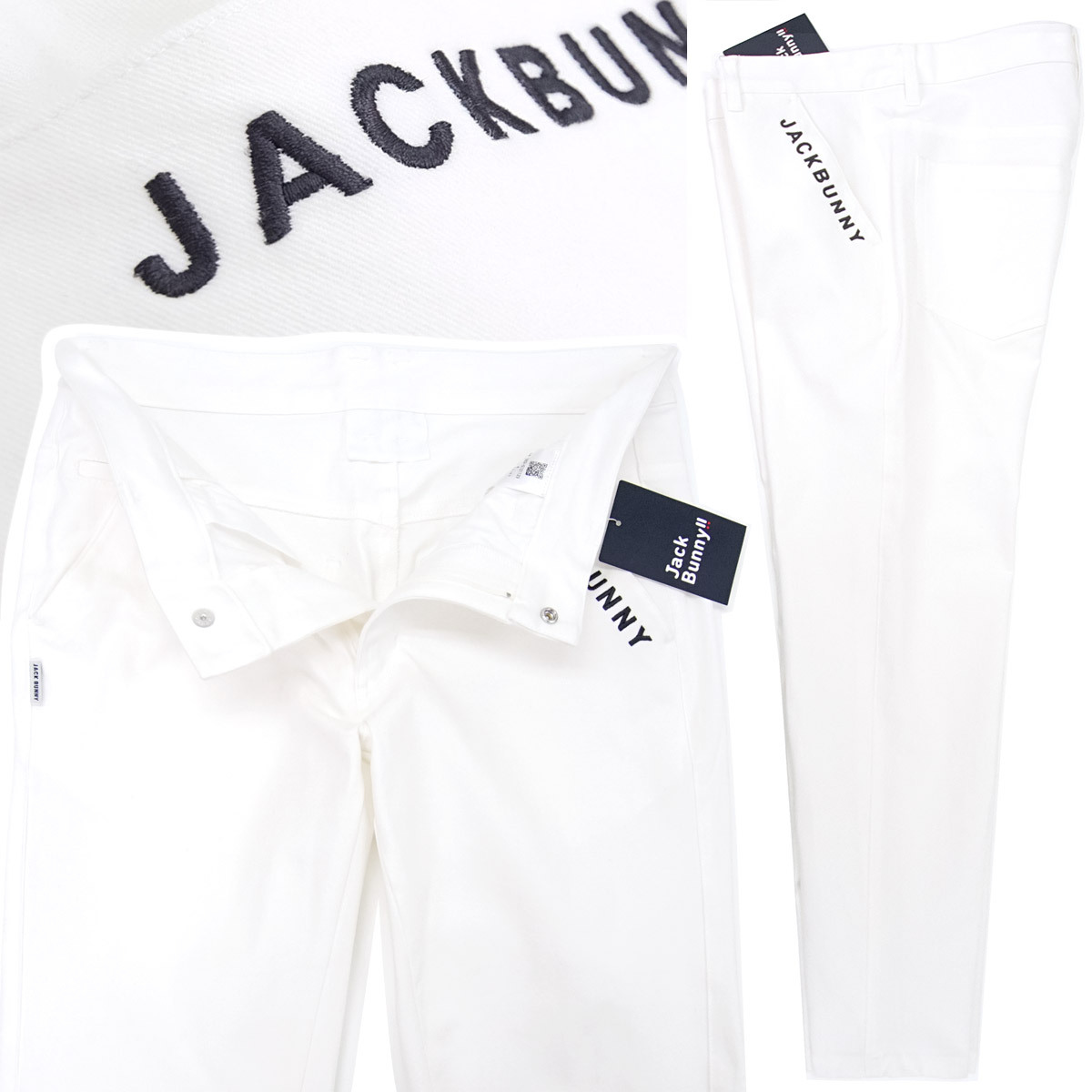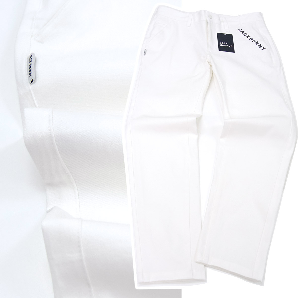 [新品]ジャックバニー by パーリーゲイツ【6 (XL)】ゴルフ 2025年製 スーパーストレッチ パンツ 前後にロゴ入 通年生地 白 Jack Bunny!!