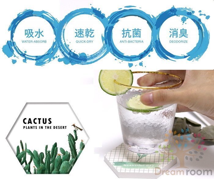 055-08 吸水力抜群 速乾性 珪藻土 かわいい コースター 六角形 サボテン 速乾 水滴を素早く吸収☆