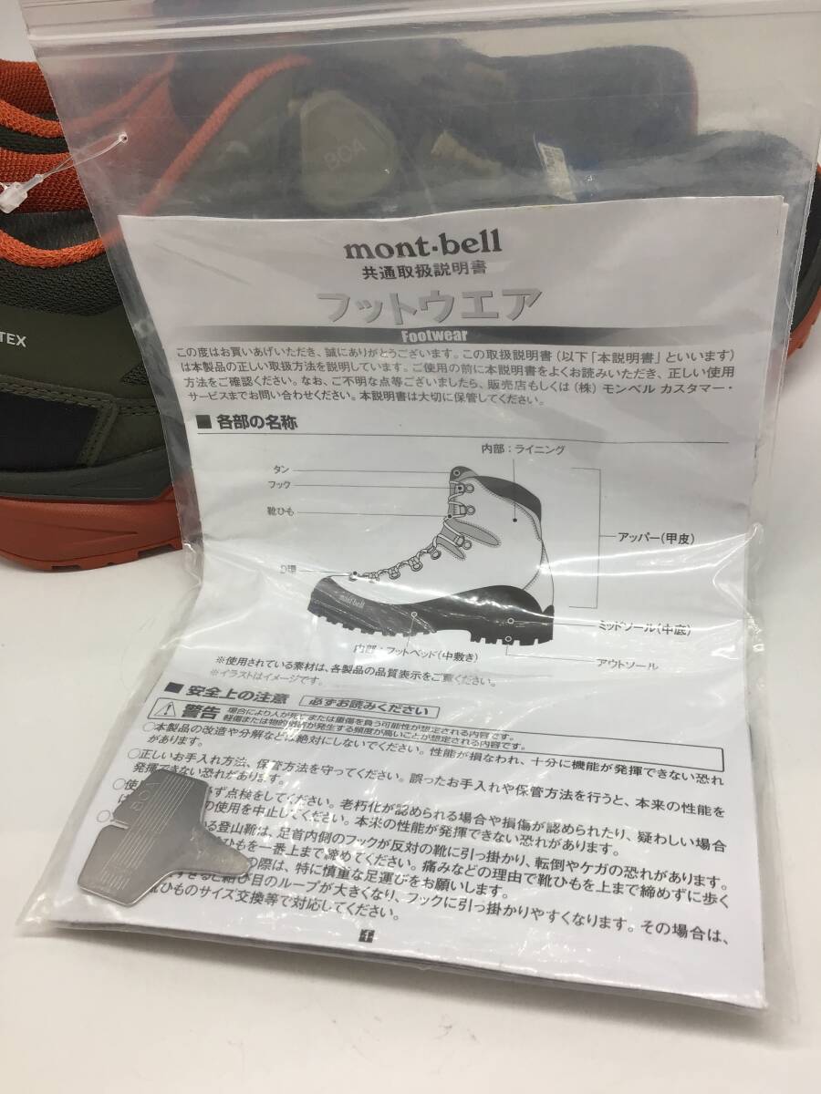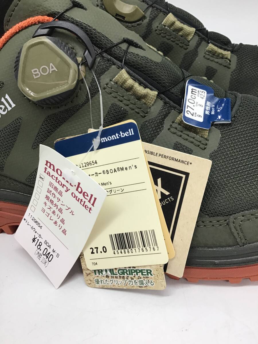 7406■mont-bell ローカットスニーカー 27cm KHGN ダークグリーン 深緑色 トレールウォーカー BOA ワイド メンズ 未使用 保管品