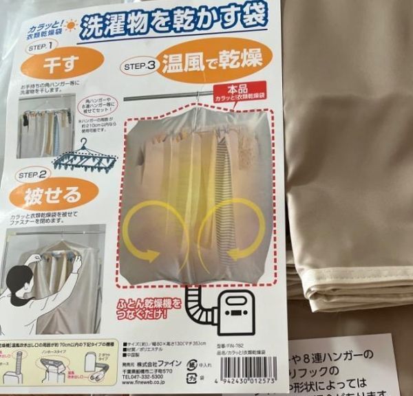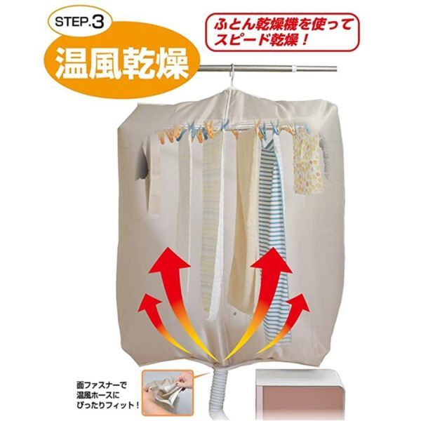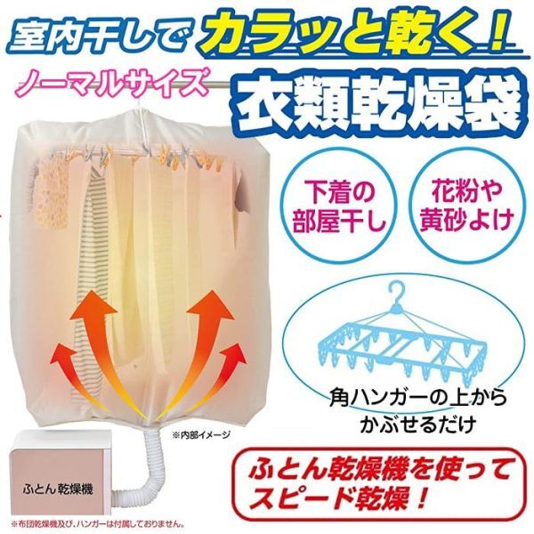 洗濯物を布団乾燥機を使って洗濯物を素早く乾かせる、衣類乾燥袋。