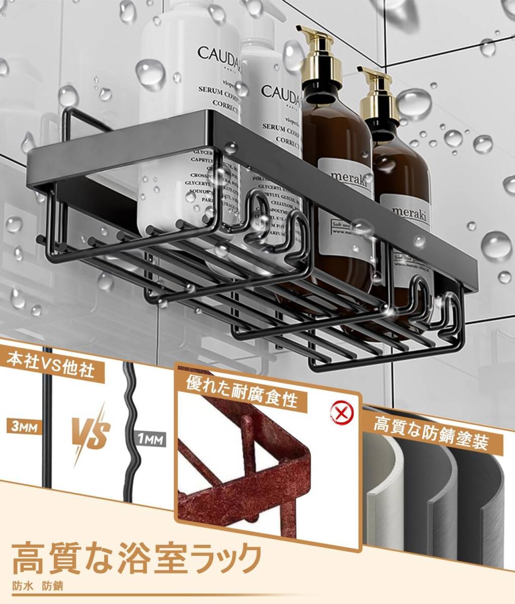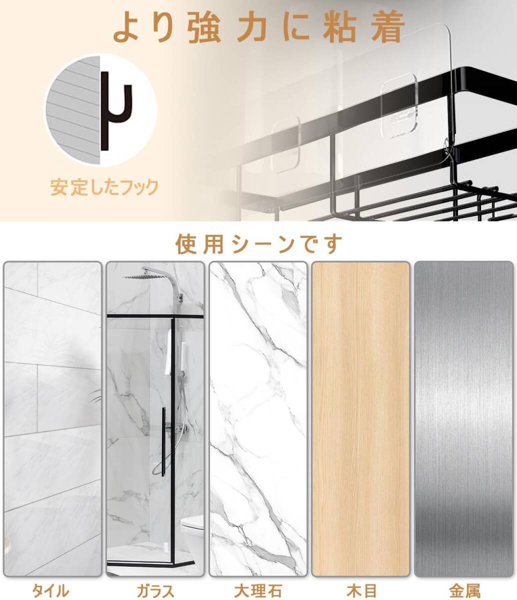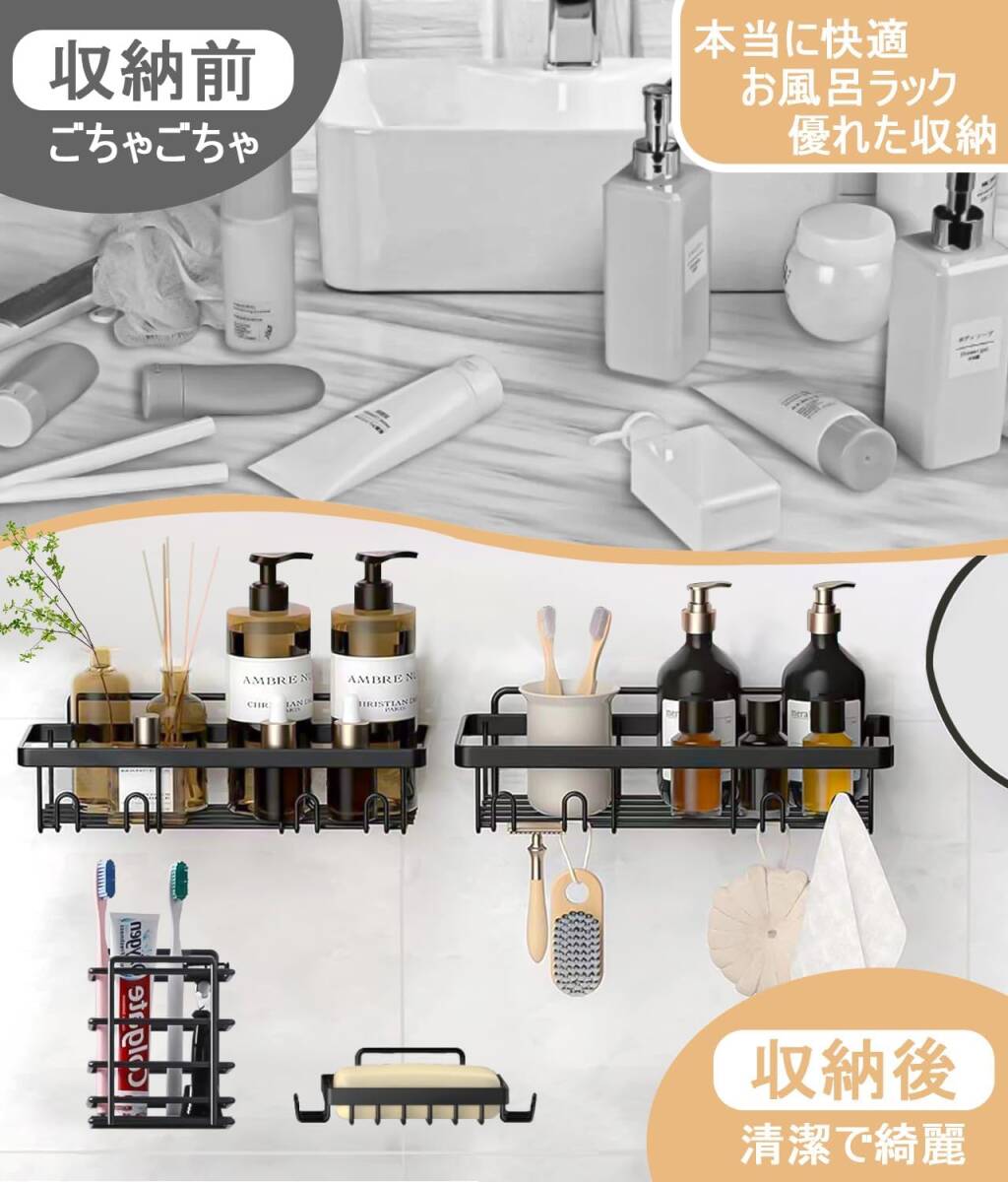 浴室ラック 4セット強力粘着固定 合金お風呂ラック 穴あけ不要シャワー 水切りお風呂収納 バスルームの収納やインテリアに最適