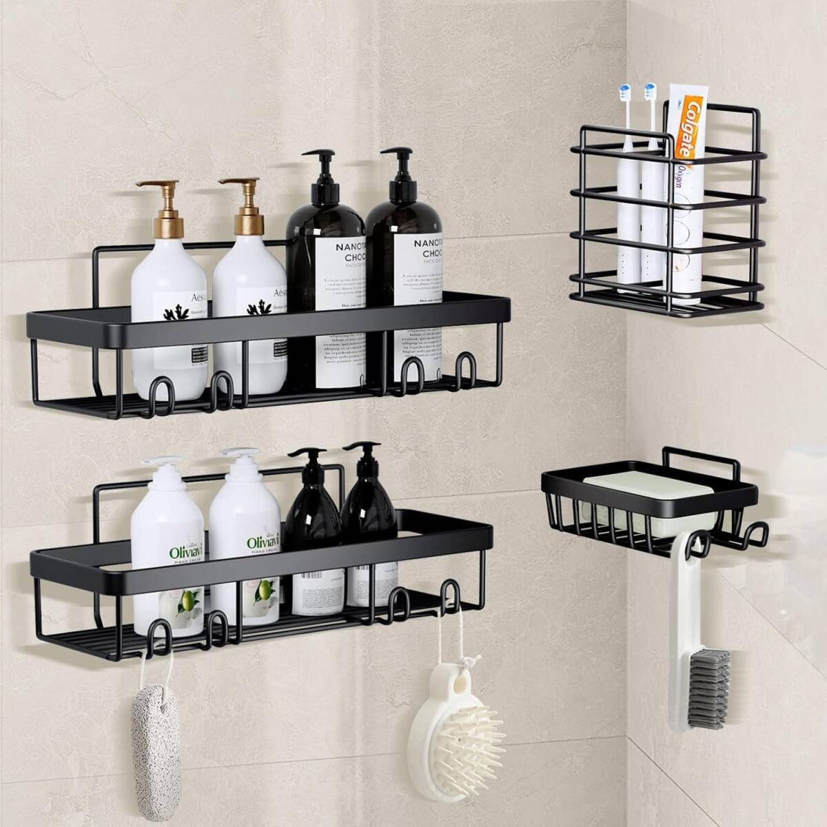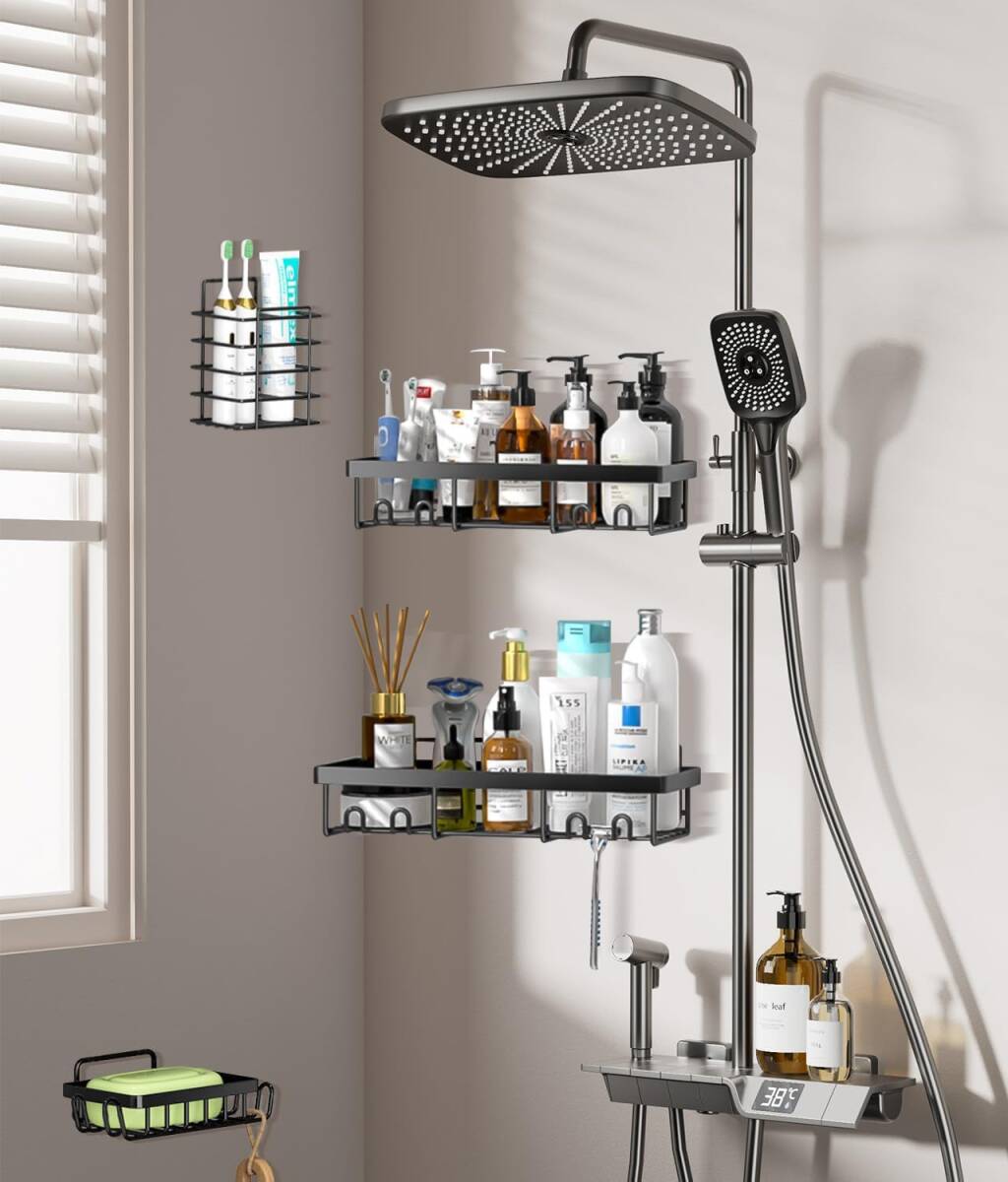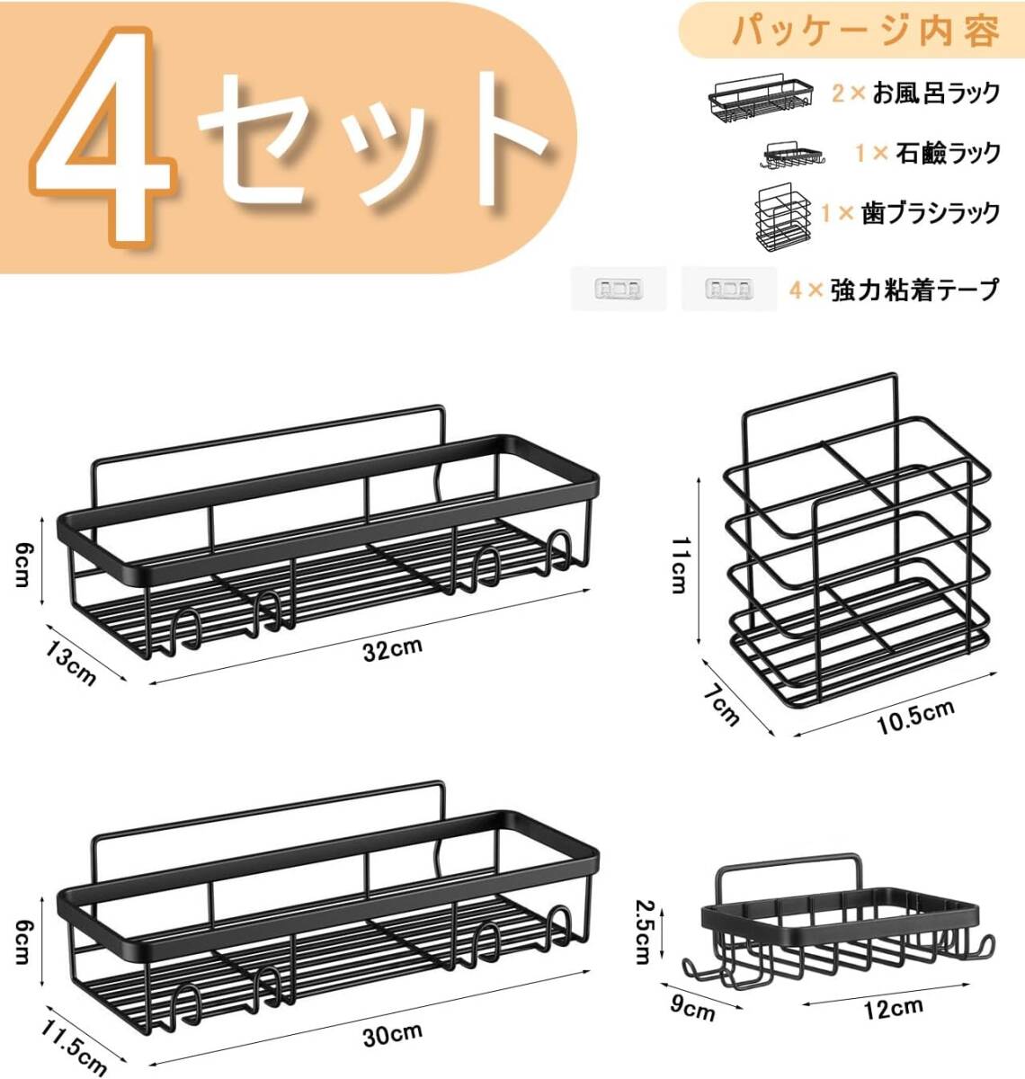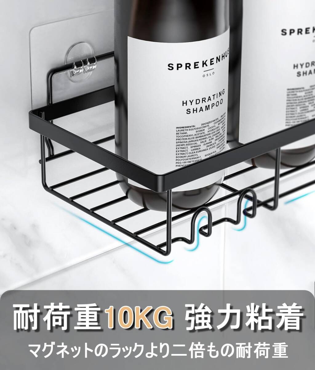 浴室ラック 4セット強力粘着固定 合金お風呂ラック 穴あけ不要シャワー 水切りお風呂収納 バスルームの収納やインテリアに最適