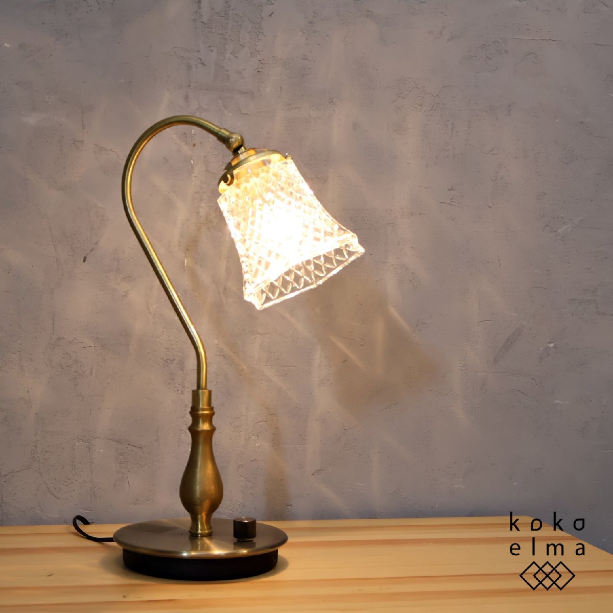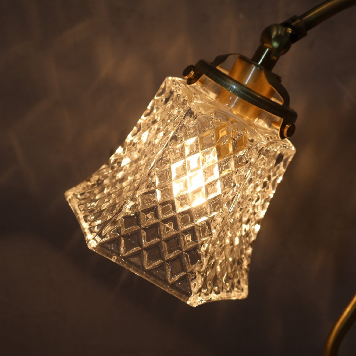 ヨーロッパアンティークのようなガラスシェードと真鍮のフレームが