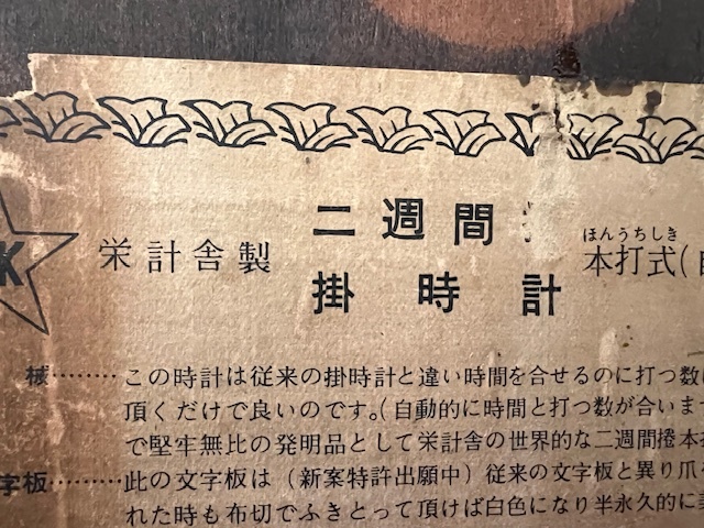 | 【菊水-681】(KB) 昭和アンティーク 振り子時計 EIKEISHA 栄計舎製 ジャンク品 二週間掛時計 本打式 BJS752 AKマーク/(S) |