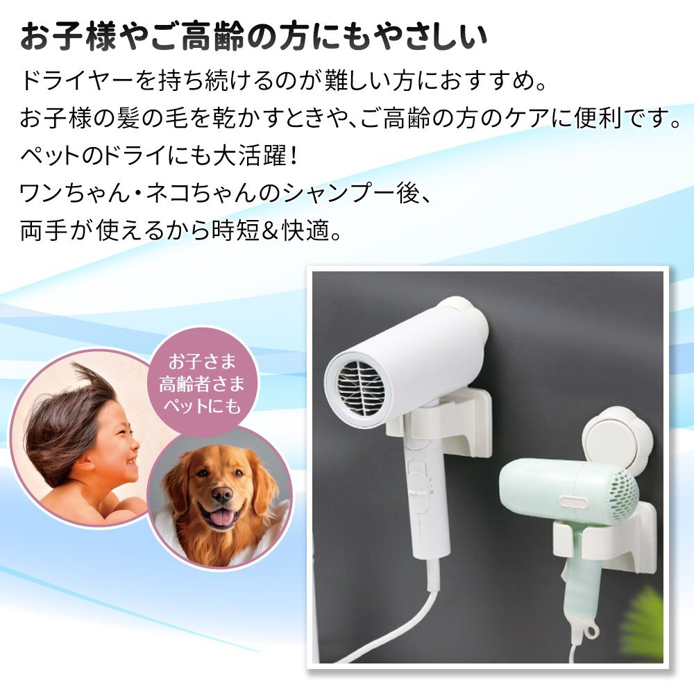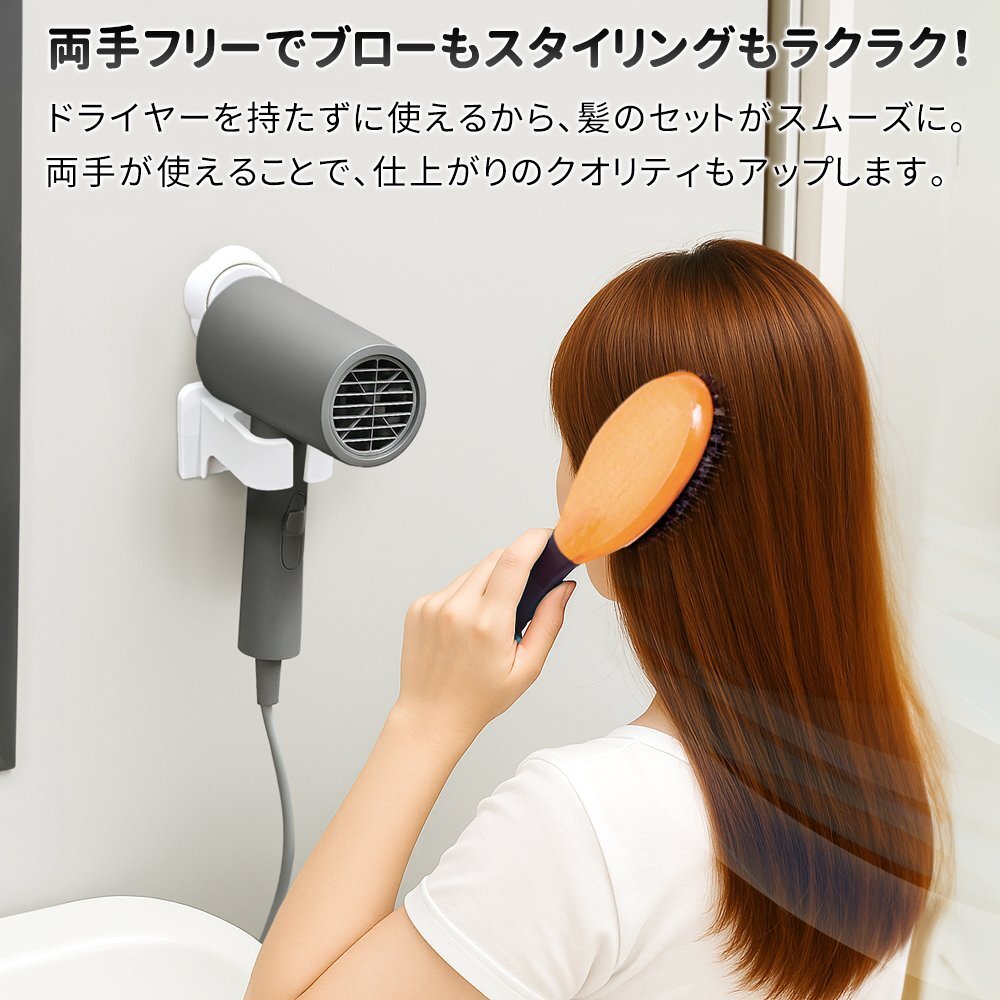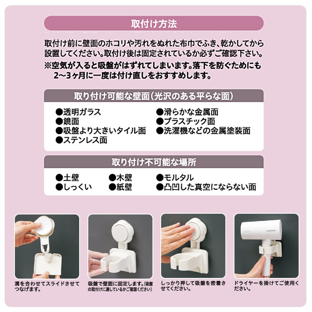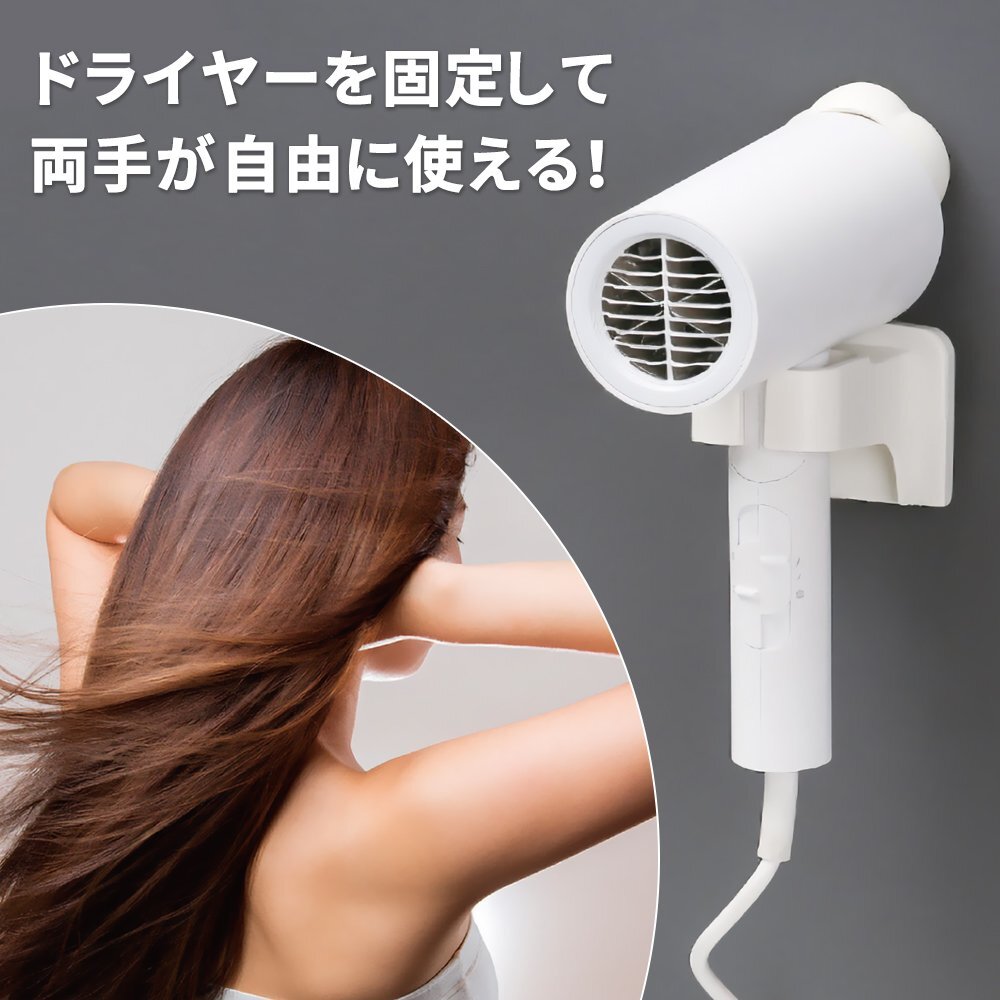 | 壁にピタッと吸着! ドライヤーを固定して、両手が自由に使える! | |