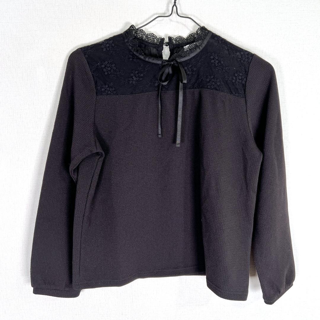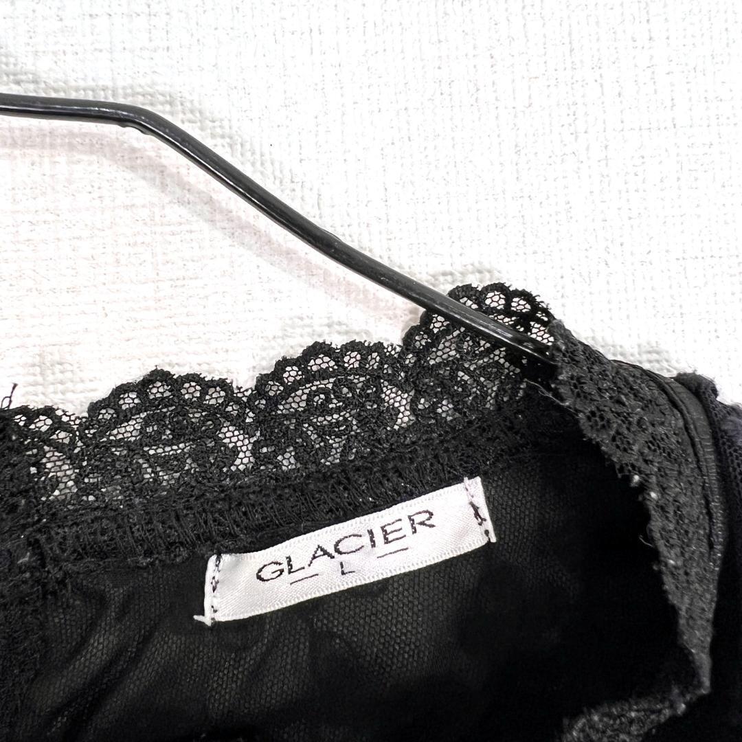 【GLACIER】グラシア 黒 ブラック系 レース 長袖 カットソー トップス レディース 女性用 Lサイズ【c022】