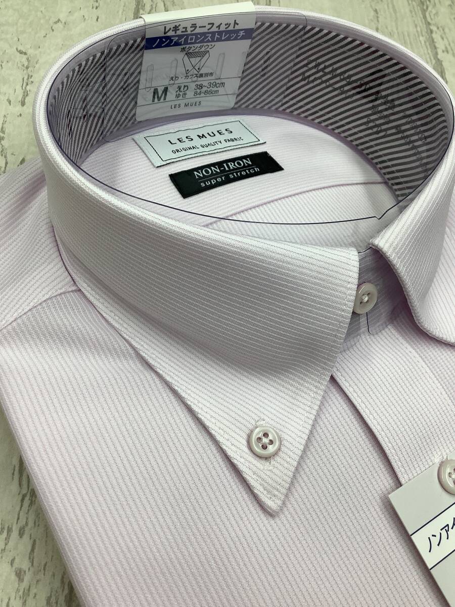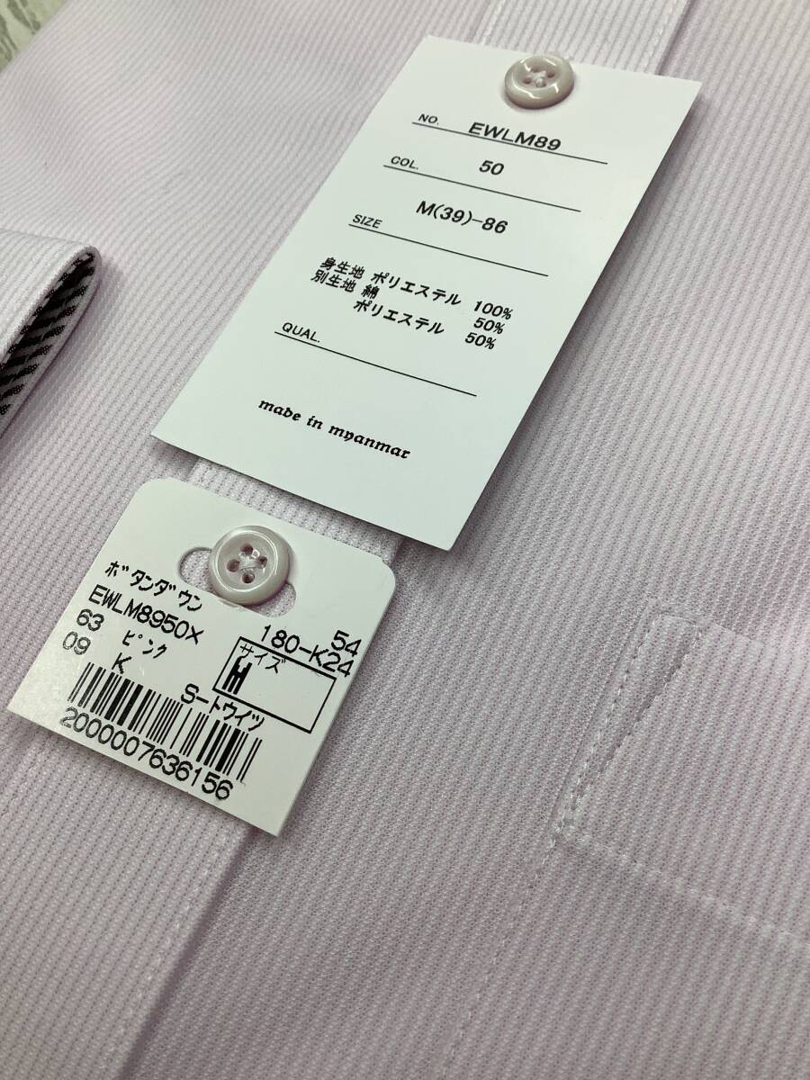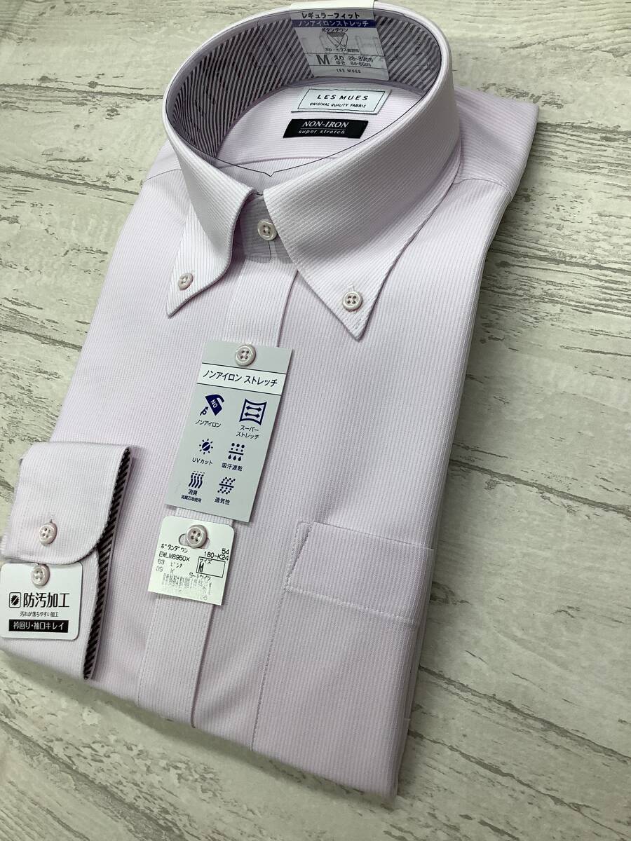 新品未使用 ★39-86カッターシャツMサイズ ボタンダウンドレスシャツ  ★スーパーストレッチ  ピンクストライプ