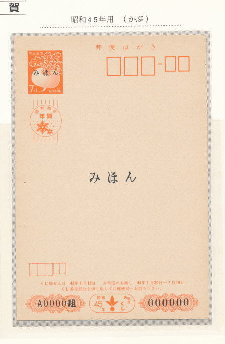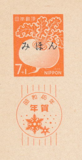 ■No 13★ みほん字入り・年賀はがき 昭和45年用(1970年)『かぶ』/寄付金付・お年玉付 7円+1円 ■