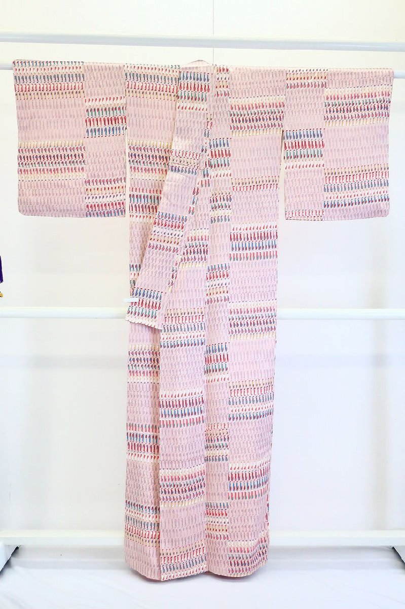 桜色地に、鳥文様があしらわれた小紋です。 色とりどりに染められた鳥の絵柄が珍しく、お洒落で目を惹く素敵な一枚です。 未使用品です。 担当:前田 |