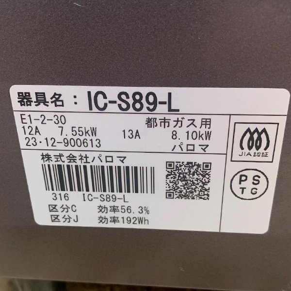| Paloma/パロマ 都市ガス ガステーブル IC-S89 2023年製 | |