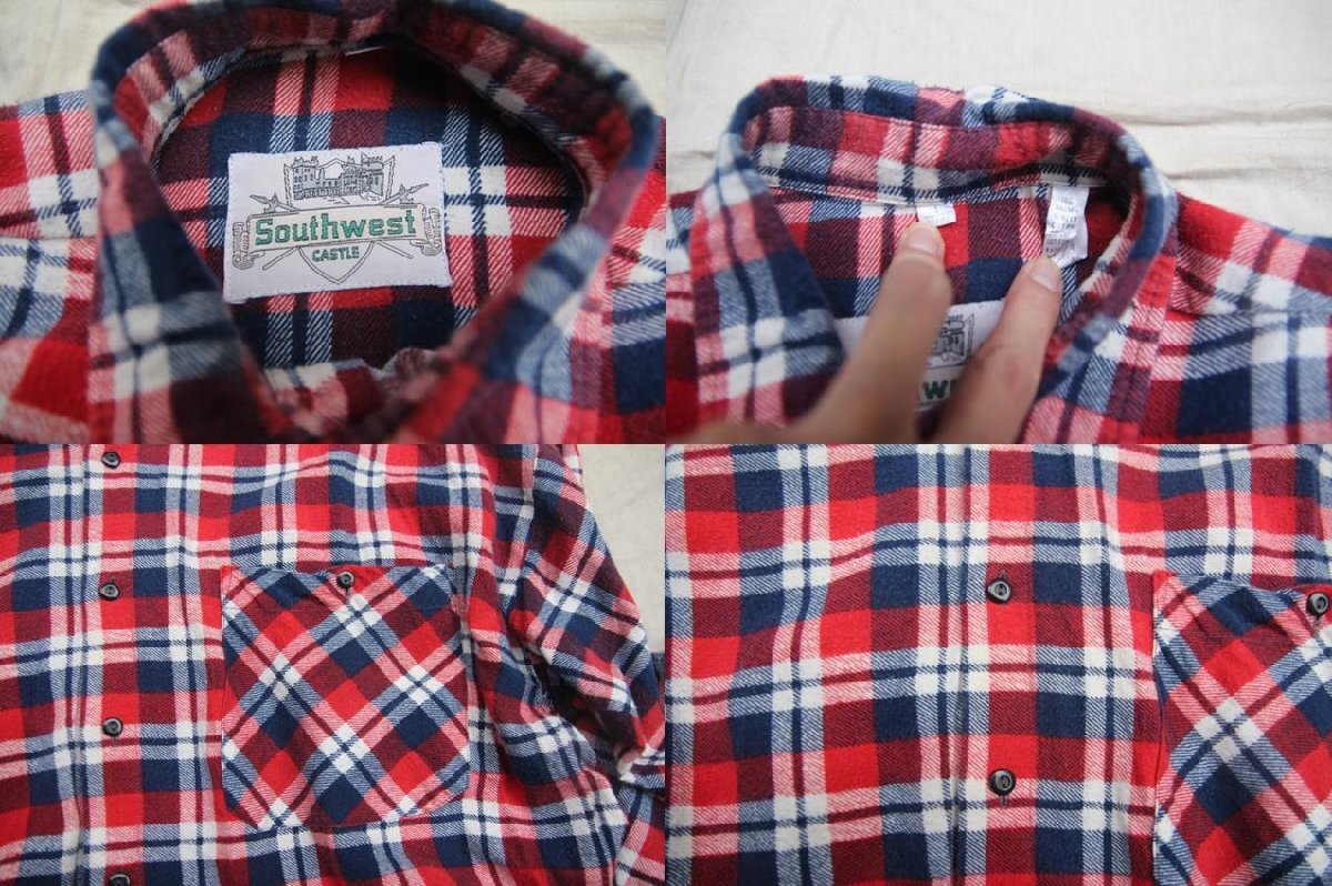80s 90s VINTAGE ヴィンテージ USED 古着 Southweat Castle Flannel Shirts Euro Check フランネルシャツ チェック柄 L ユーロ L