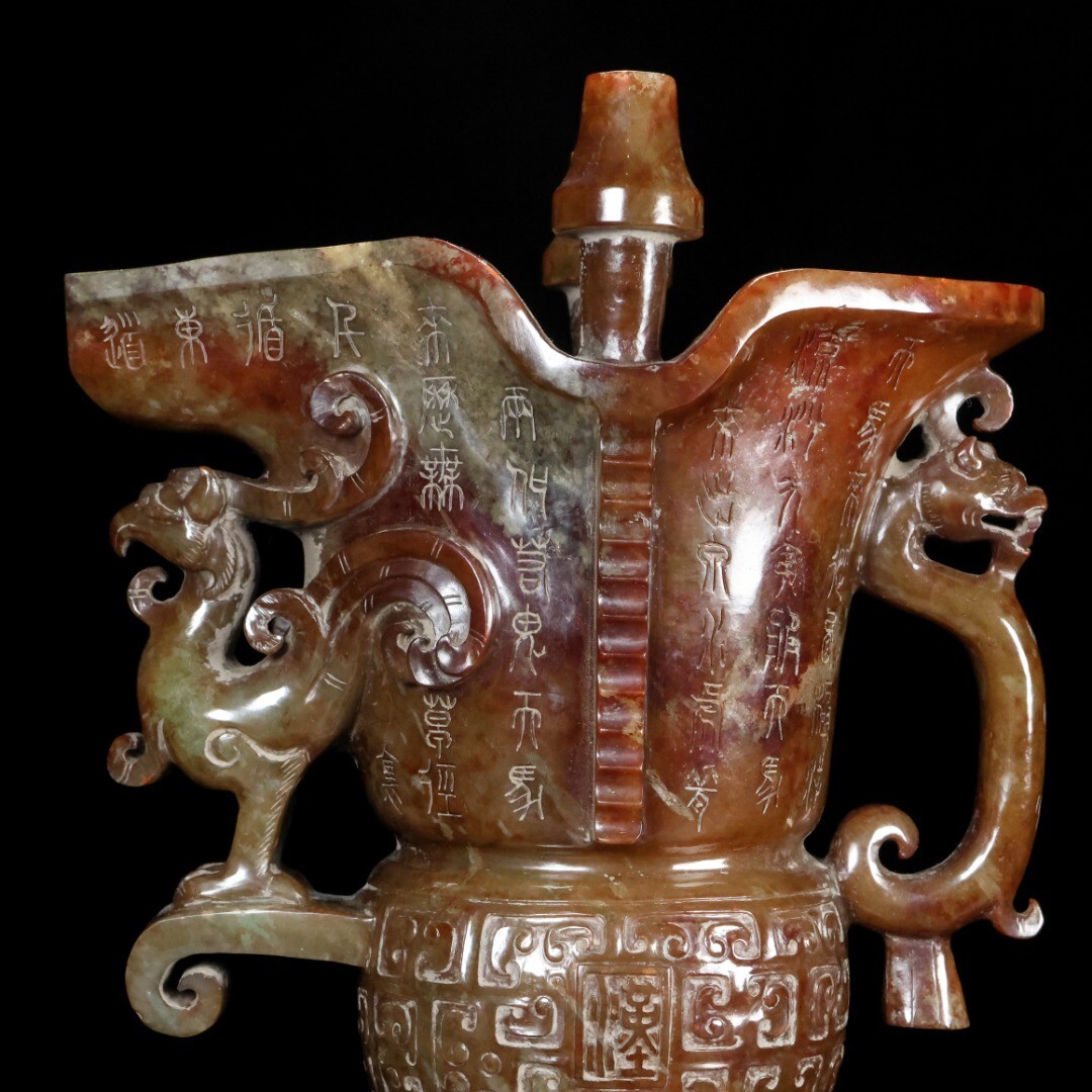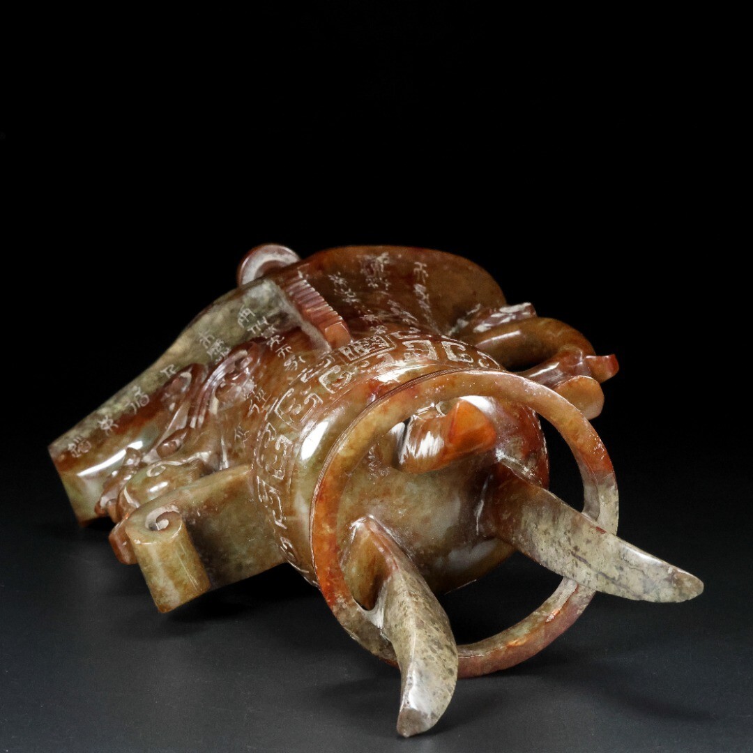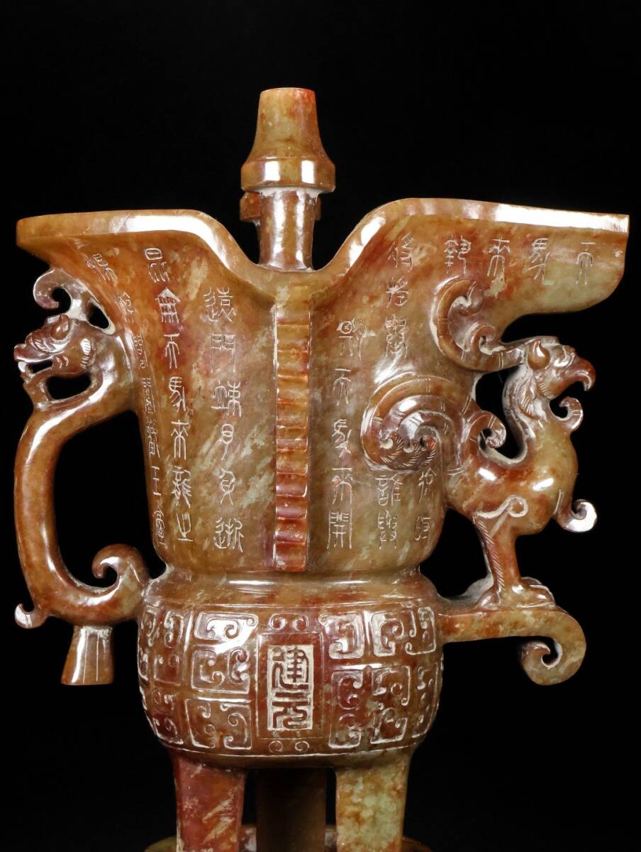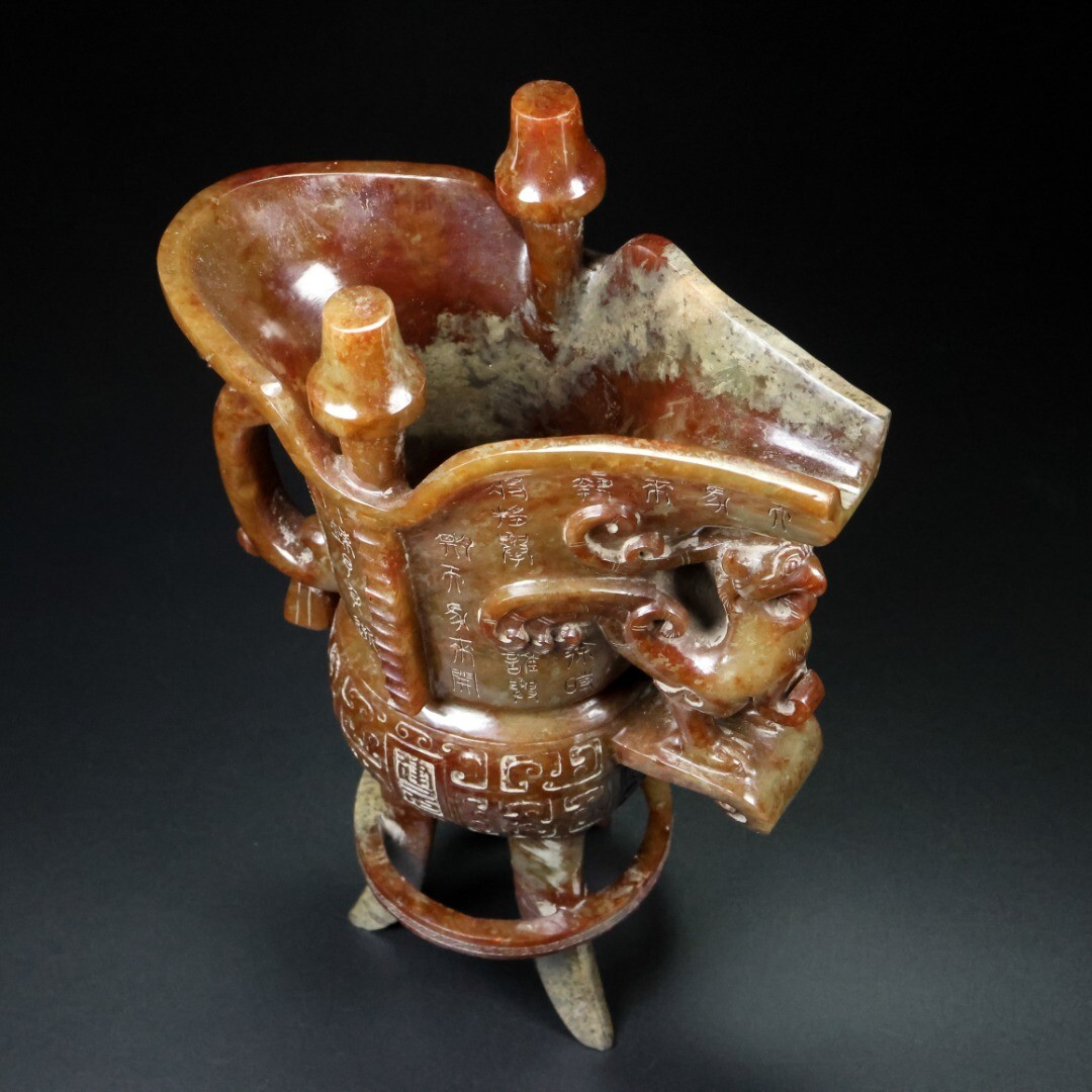 【永】漢代時期 和田玉 古玉彫 高古玉 三足鳳耳 酒器 玉杯 極細工 置物擺件 古美術品 古董品 収集 古美味 骨董品 旧家蔵出 中国唐物 1247g