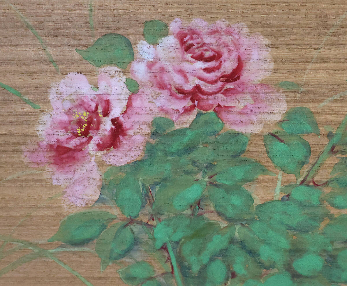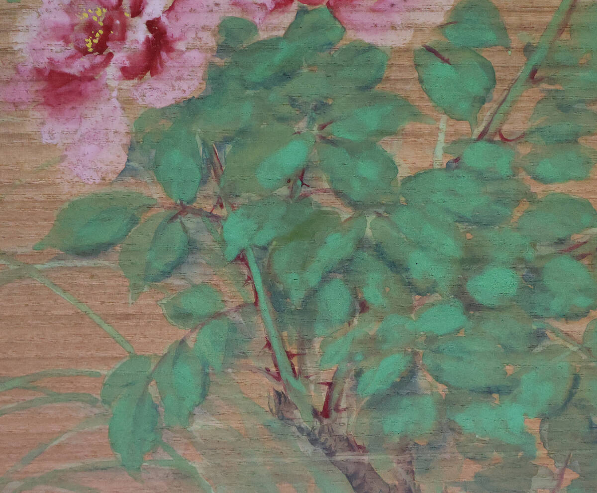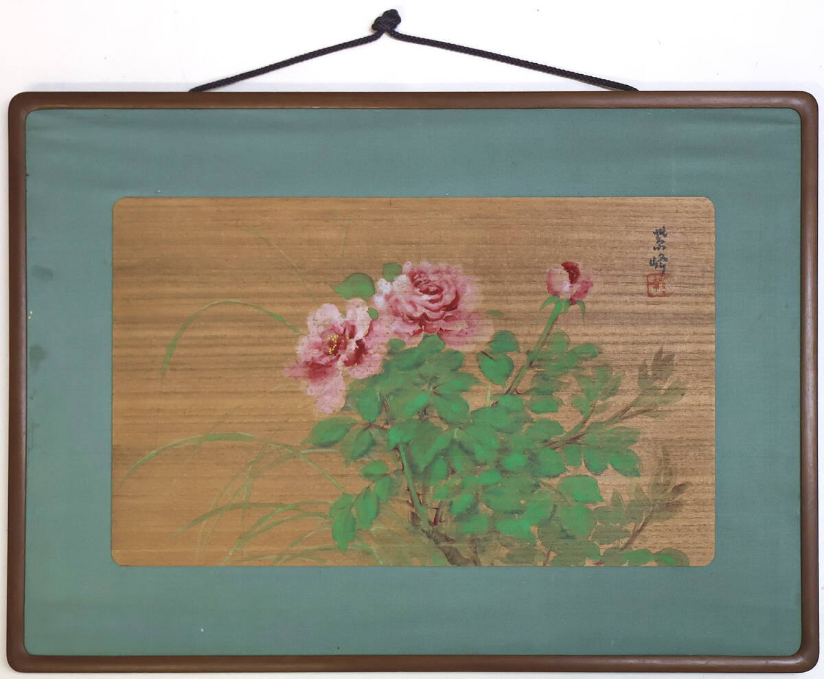 画家:榊原紫峰 技法:木板に彩色 画面サイズ:31×51㎝ 額サイズ:50×70㎝ サイン:右上にサイン コンディション:イタミがあります。 |