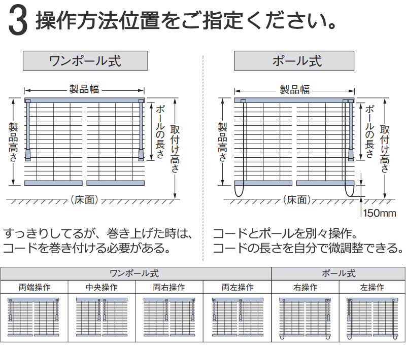 窓のサイズや使用シーンに合わせて選べる操作方法
