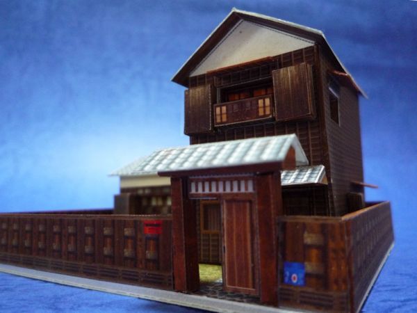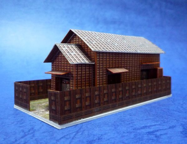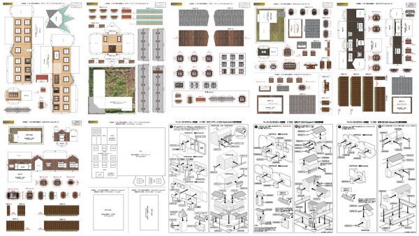 カラー印刷されたプリント部品を切りぬき、組み立てます。同封されているスチレンボードは建物・本体の内側から強度補強するために接着します。