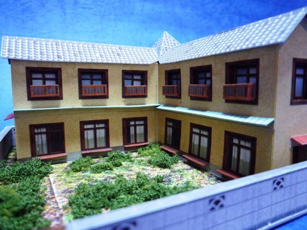 ○自作のNゲージ用(1/150)ストラクチャーになります。モダンアパートと住宅2棟をイメージして作りましたお客様自身で制作するキット商品です。