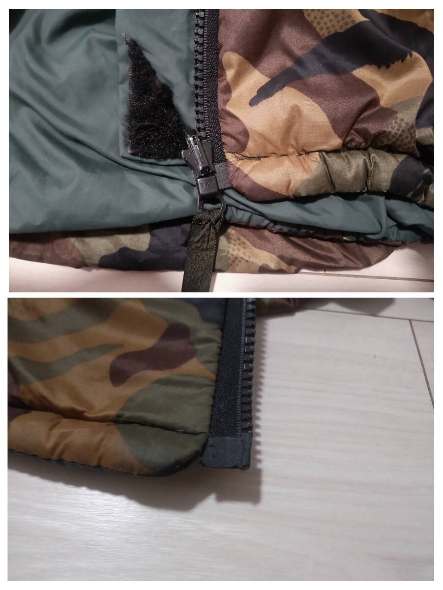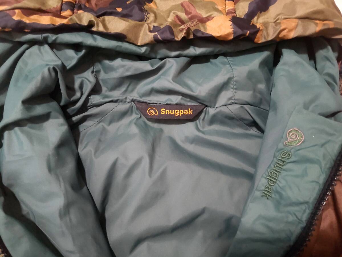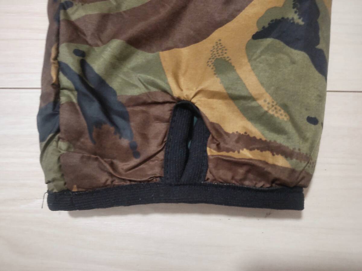 イギリス、Snugpak(スナッグパック)社のインサレーションジャケットです シュラフや防寒クロージングを作っている歴史のあるブランドです ■サイズはSになります 素人採寸ですが 身幅(脇の下で)59cm 着丈(背面側で)70cm 裄丈87cmありました ■イギリス製です ■リバーシブルとなっております ■片面はカモフラージュ柄となっております ■もう片側は落ち着いたグリーン系のカラーです 全体的にミリタリーテイストのあるデザインとなっております ■生地はナイロンです ■素材にはPERTEX(バーテックス)を使用しております ■中綿が入っております ただ申し訳ございませんが中綿の種類は分かりません またダウンではありませんのでよろしくお願いします ■ポケットはそれそれの面に左右それぞれと左胸に付いております ■裾とフードはドローコードで締めることが出来ます また片側の腕にもドローコードが付いております ■ユーズドになりますので使用感が全体的にあります またいくつか特筆すべき点があります 1.グリーン面全体に色あせや汚れがあります(色あせはむらがあります)またポケット付近にテカリがあります(写真8.10枚目をご参照下さい)2.正面ジッパー下部左右を合われる箇所付近に1cmほどのほつれがあります またベルクロに破れがあります(写真9枚目をご参照下さい)ジッパーは動きます 3.袖口のゴムが伸びております(写真6枚目をご参照下さい)■スナッグパックのファンの方いかがでしょうか 是非よろしくお願い致します